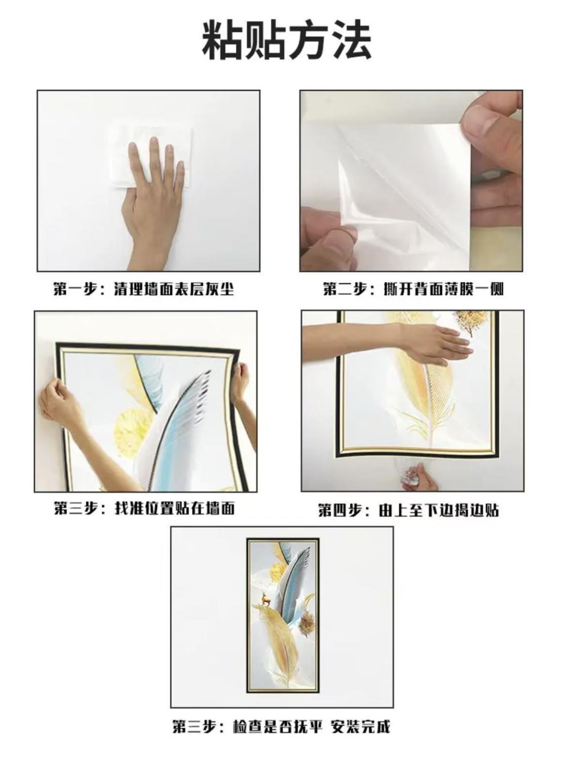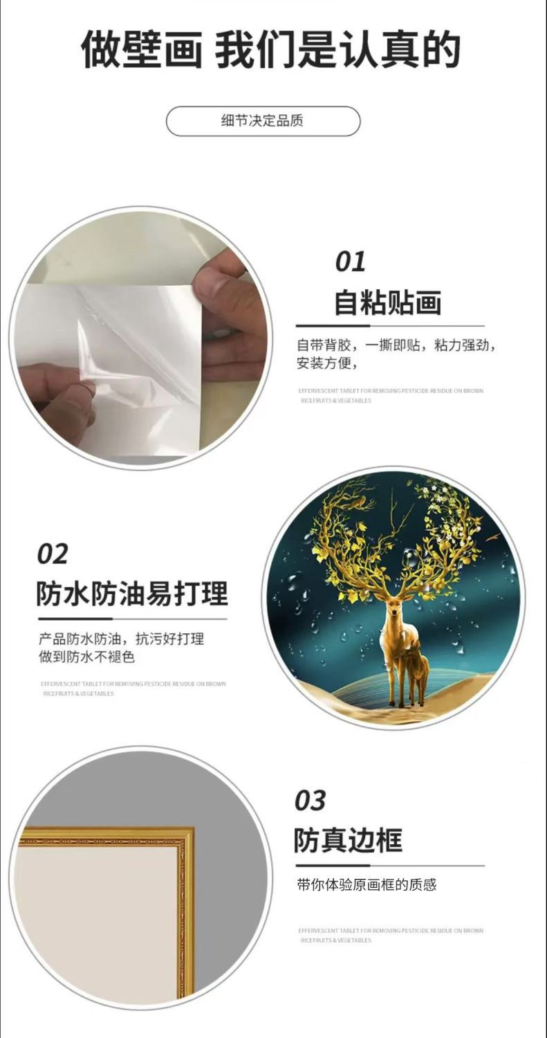 Медитируйте со спокойной душой; При поддержке Цзиньшаня; Золотой олень приветствует счастье; Величественный стиль Великой стены; Удачи; Ежегодно более чем достаточно; Дом и все процветают; Гармоничный и счастливый