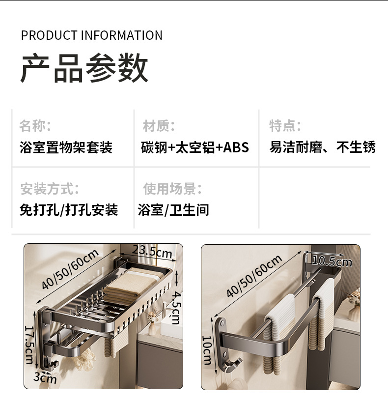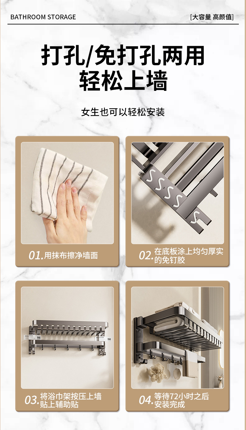 (1)此款可打孔/免打孔(两用)安装,螺丝和免钉胶都有配送的。