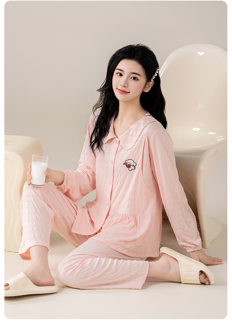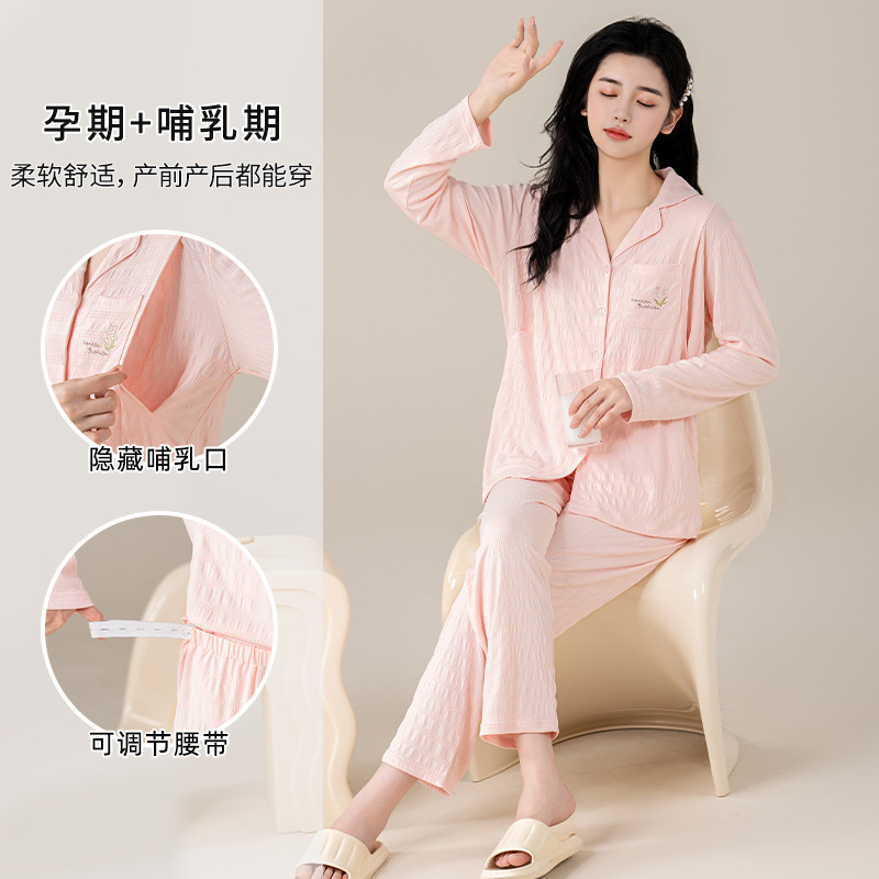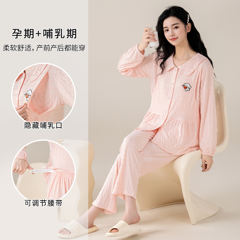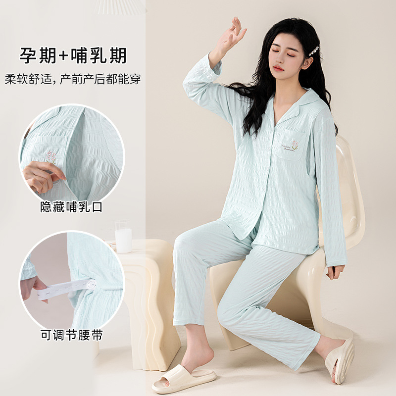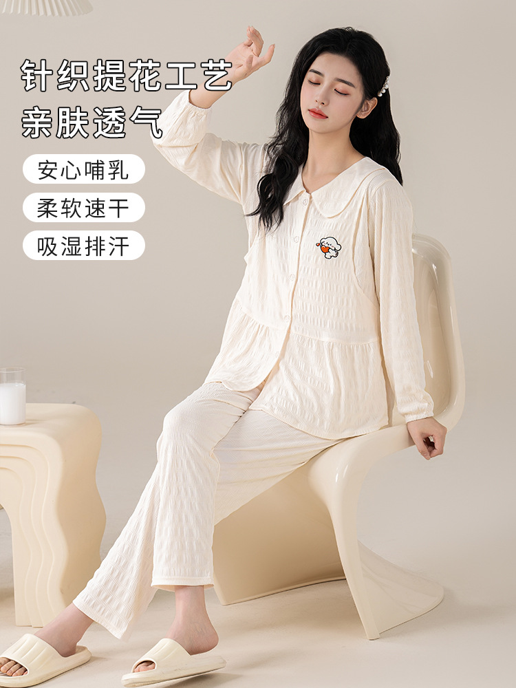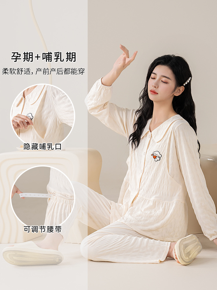Прямые продажи с фабрики, новая послеродовая одежда, шелковые хлопковые жаккардовые пижамы для кормления, женская весенне-осенняя одежда для кормления грудью, костюм для беременных