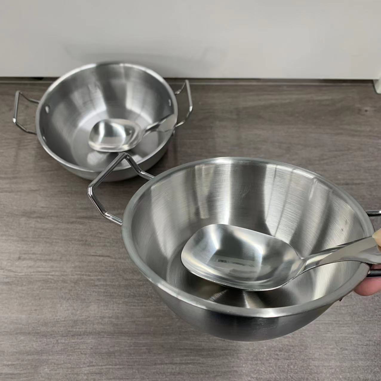 Корейская чаша из нержавеющей стали Двойная ушная чаша с ложкой Салатница Чаша с гарниром Горячая коробка для закусок Чаша для приготовления овощей Чаша с картофелем фри корзина