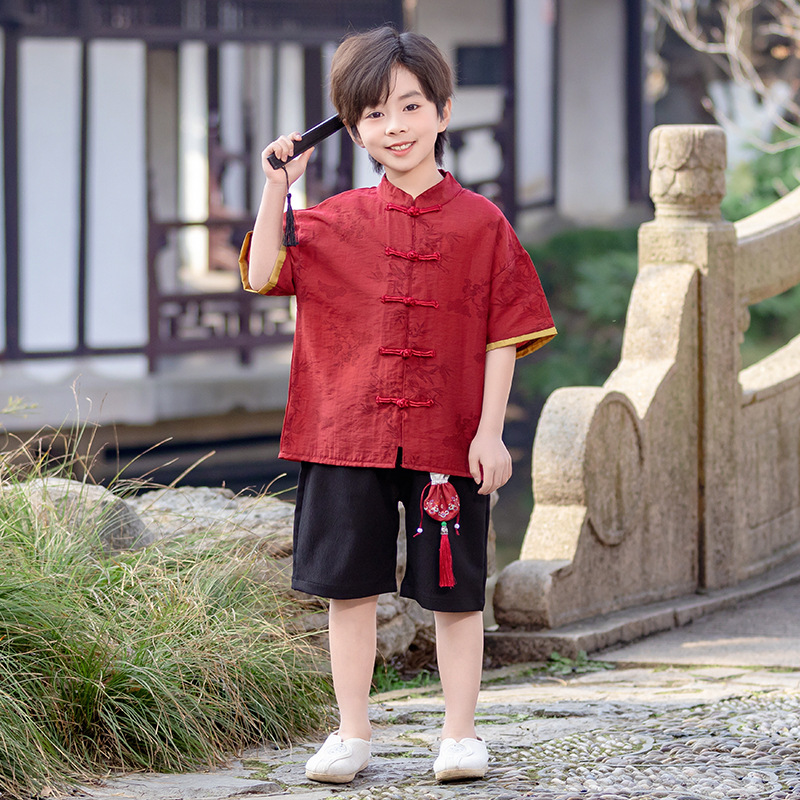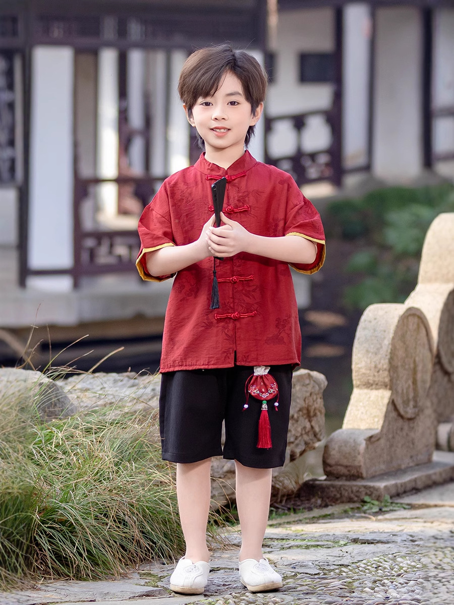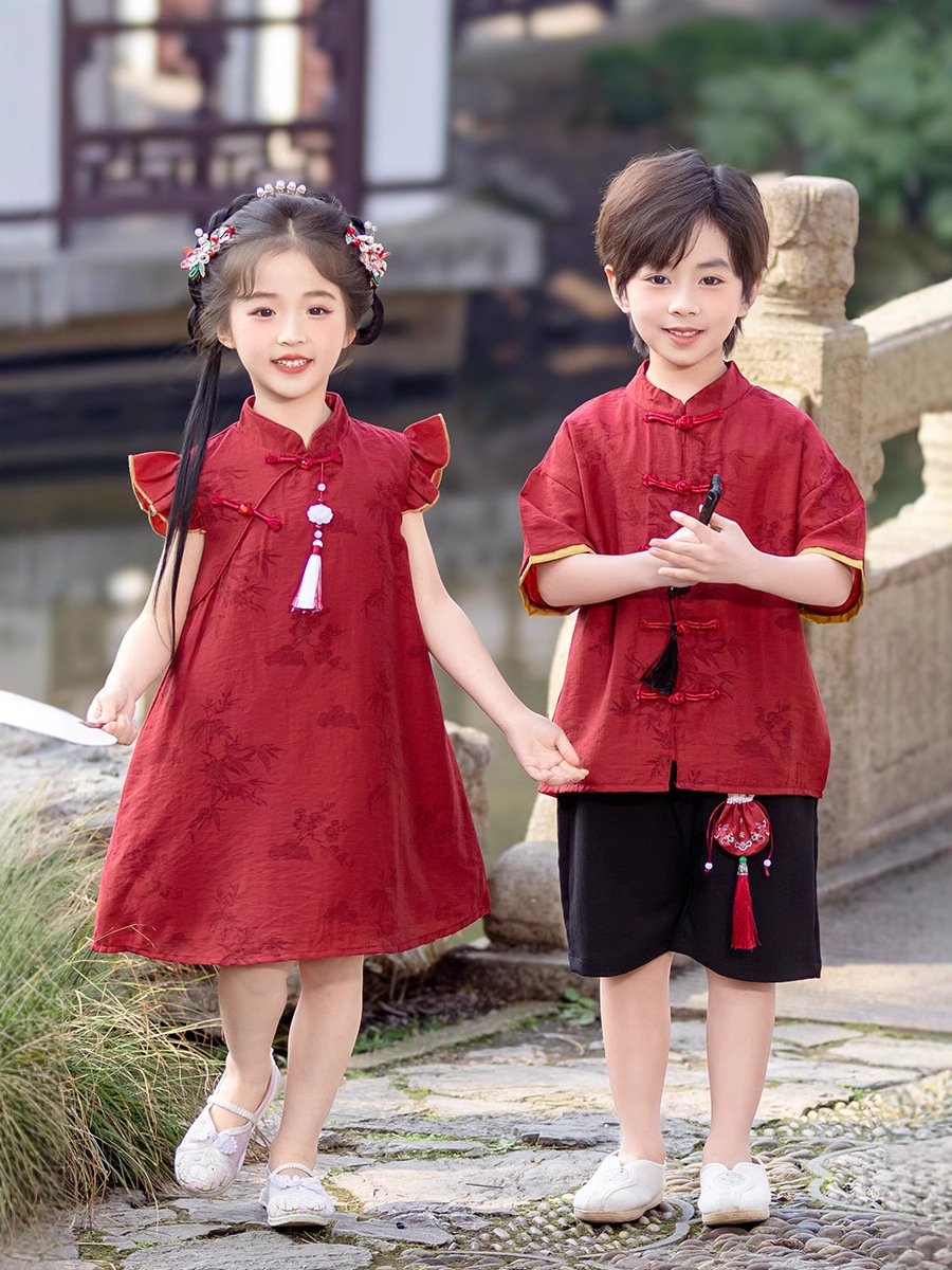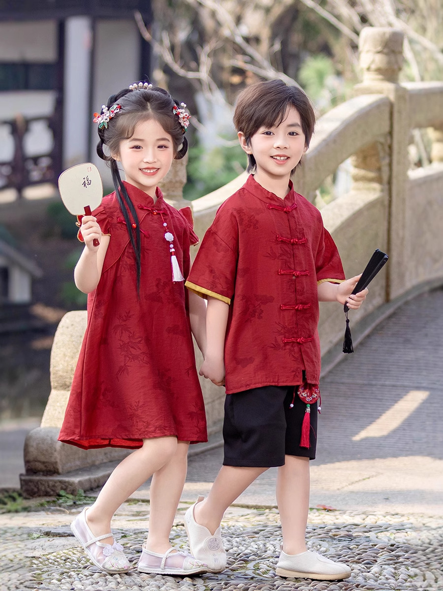 Мальчики и девочки Hanfu Summer Новый китайский костюм 2025 Новый детский национальный стиль Tangbao Мужское свадебное платье