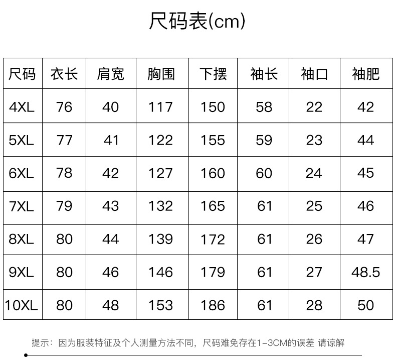 4XL (70-87.5kg износа); 5XL (87.5-95kg одежда); 6XL (95-102.5kg износа); 7XL (носить 102.5-110kg); 8XL (110-117.5kg износа); 9XL (117.5-125kg износа); 10XL (125-145kg износа); L