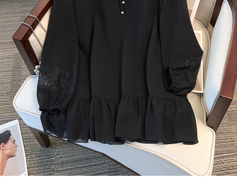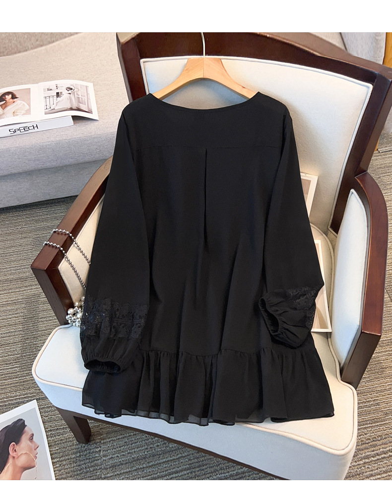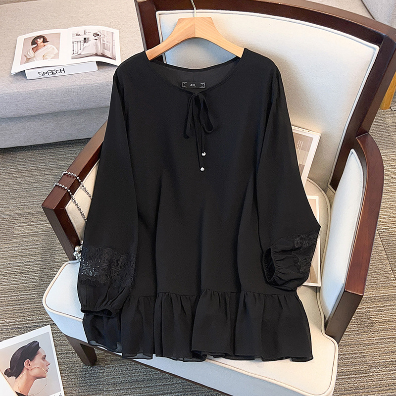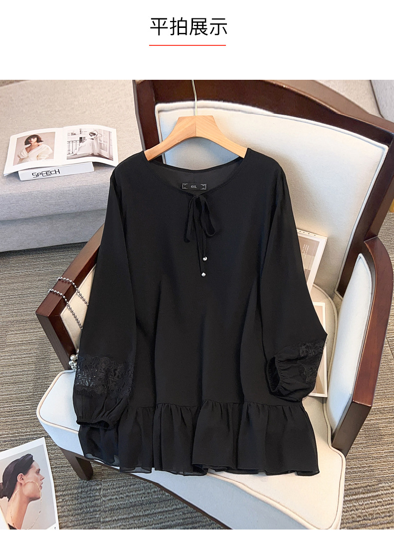 Большой размер женской одежды жирный мм пузырьковый рукав шифоновая рубашка весной и осенью рубашка 280 кг свободная тонкая топ 24507T