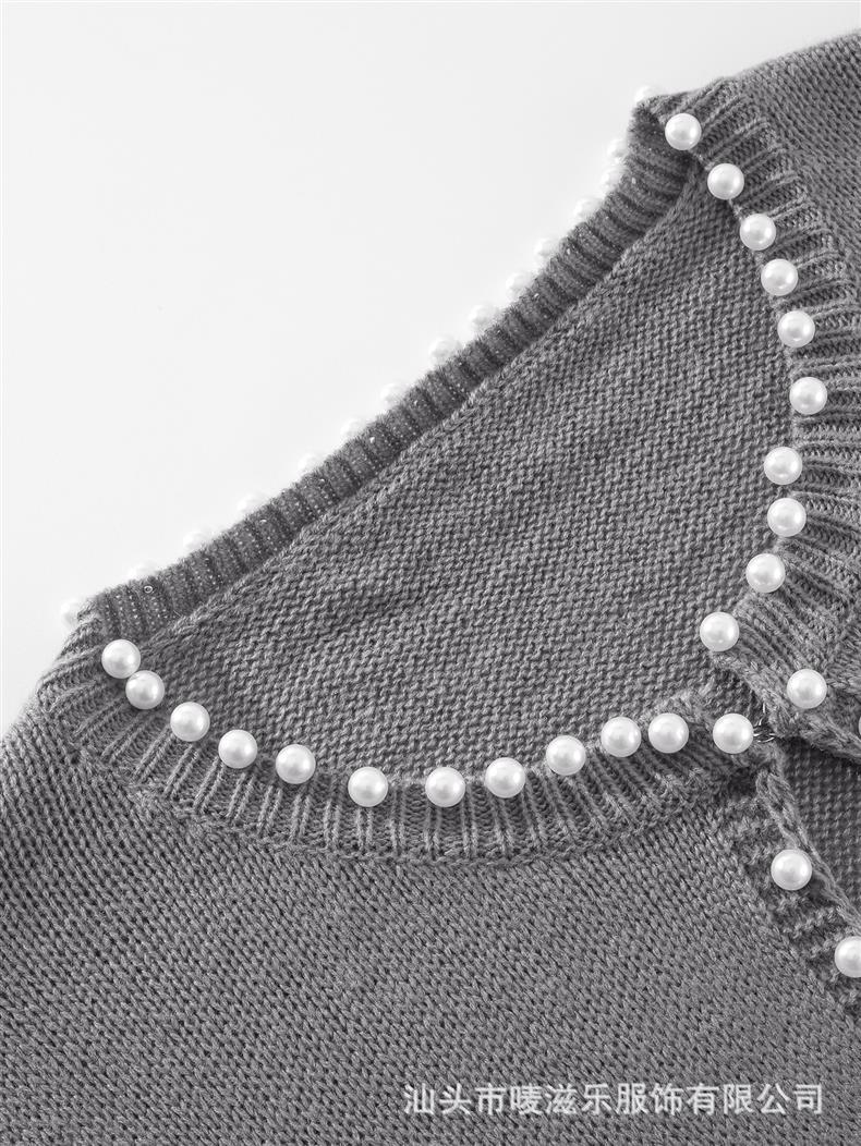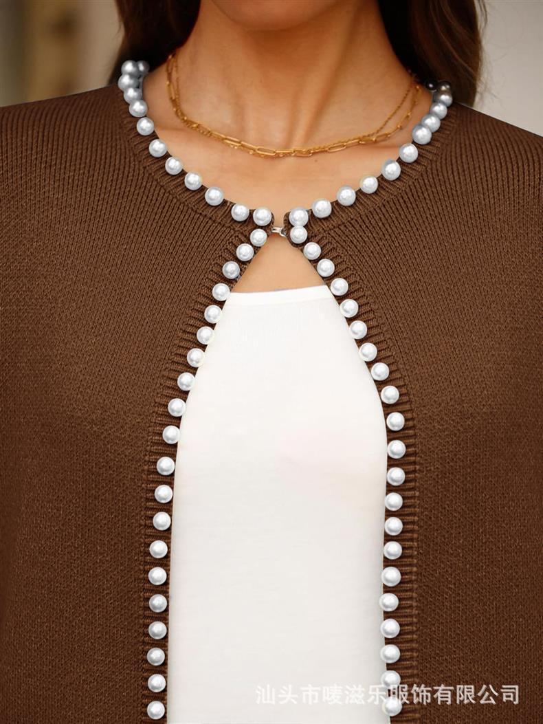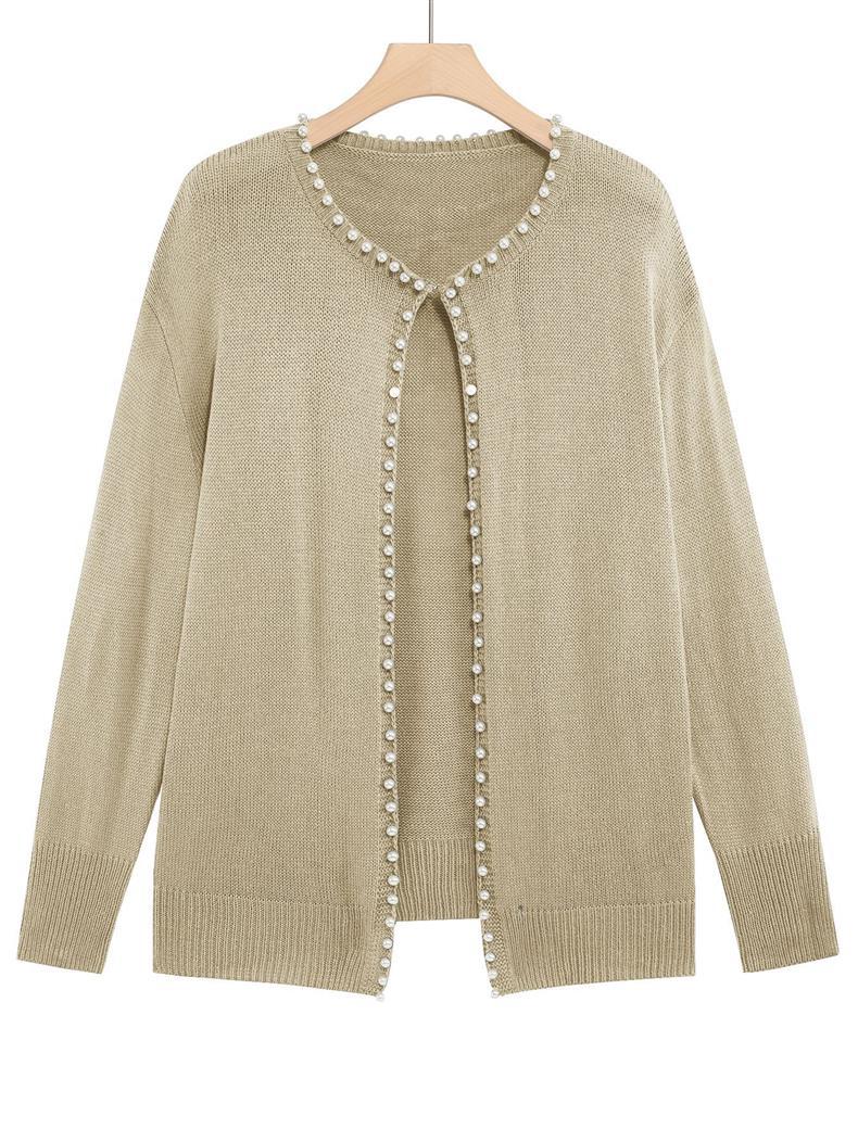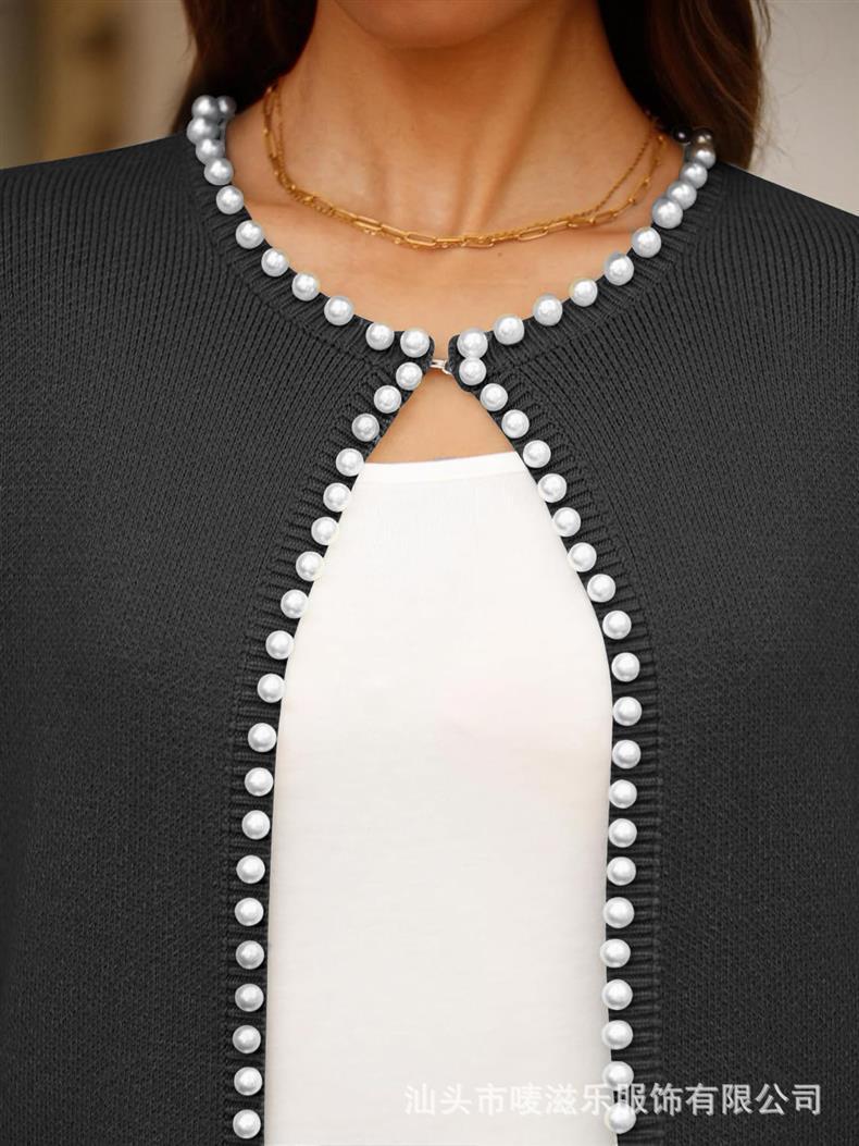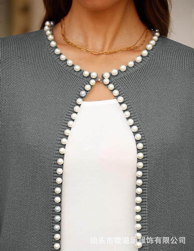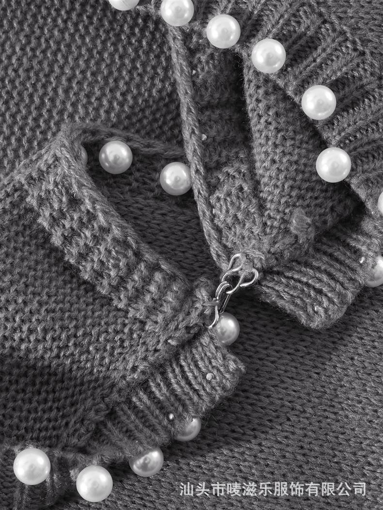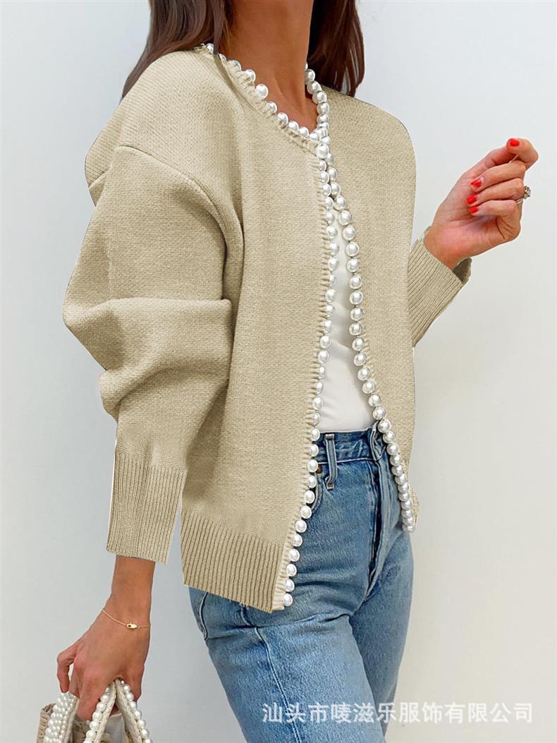 Женский кардиган с круглым вырезом и жемчужной отделкой, осенне-зимняя коллекция 2025 года, новинка для трансграничной торговли Amazon в Европе и Америке.