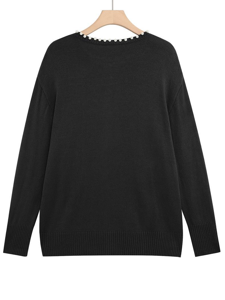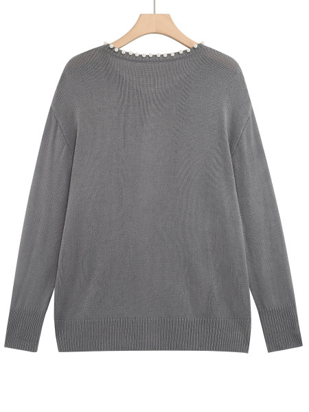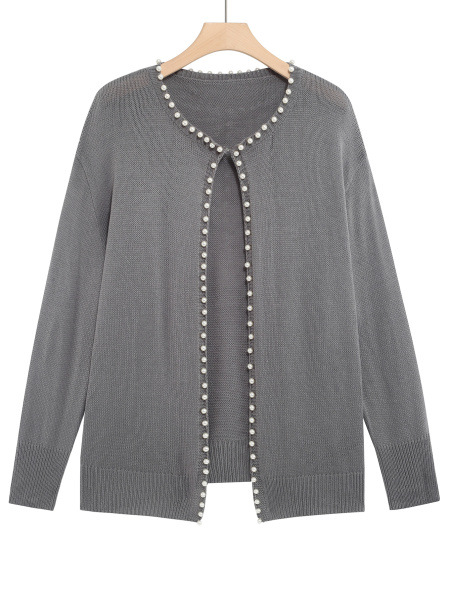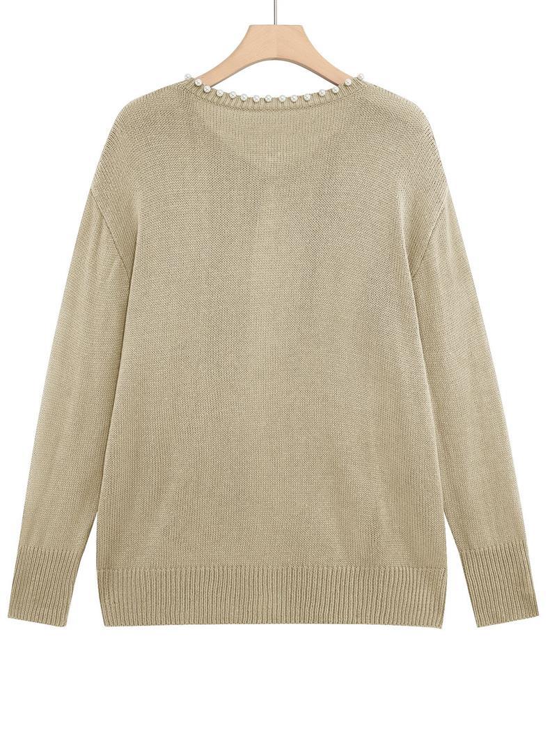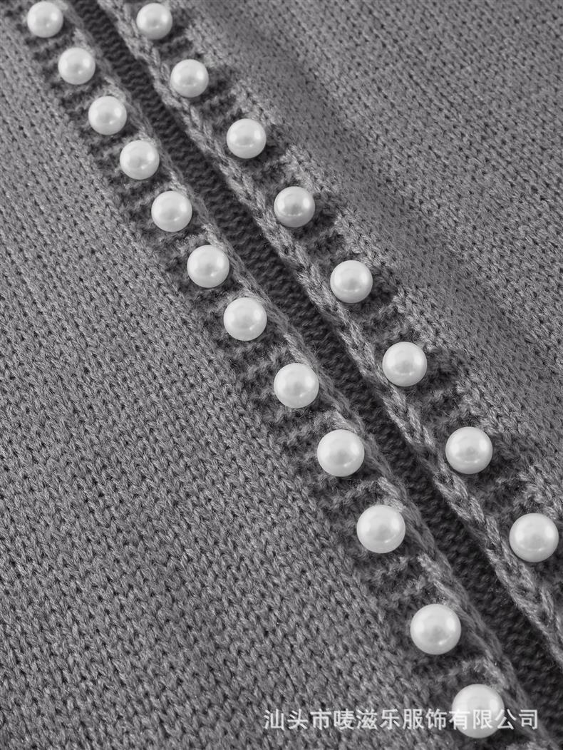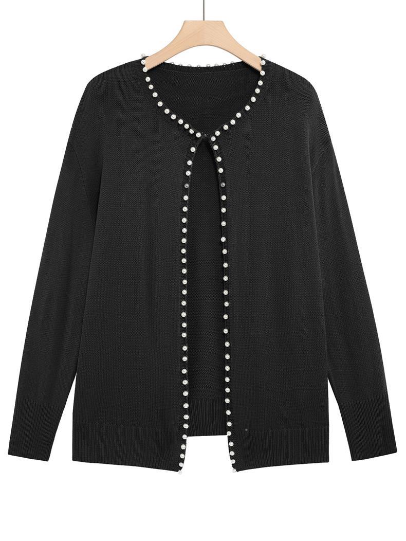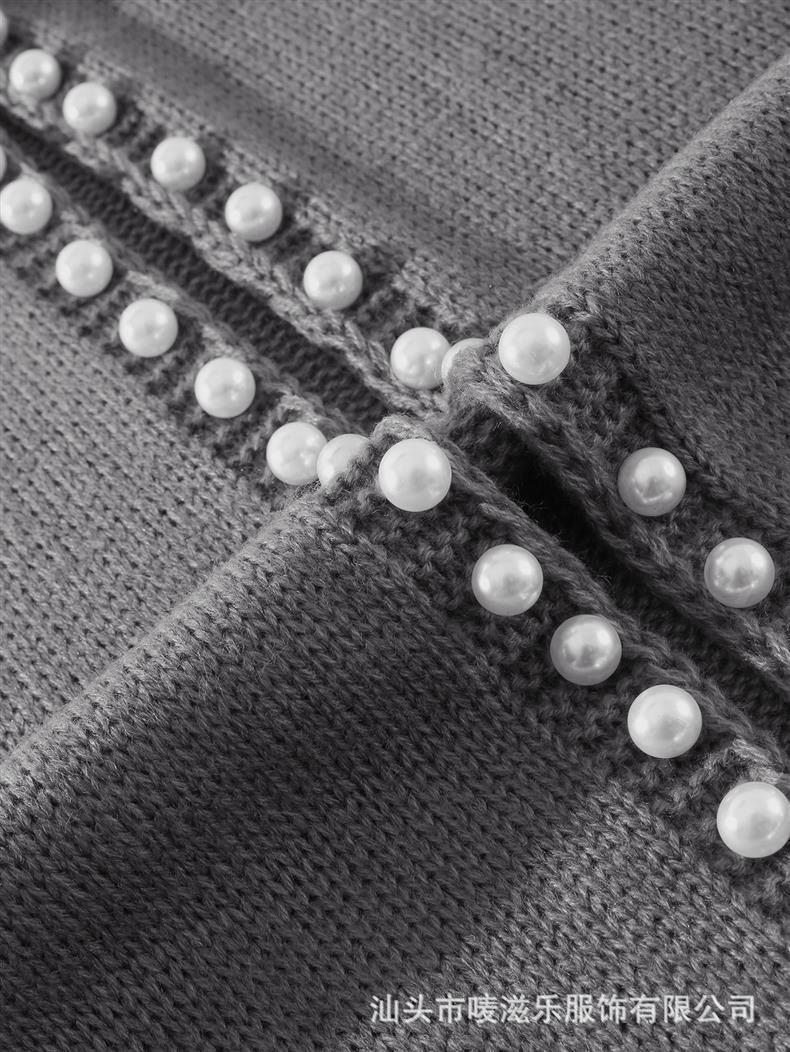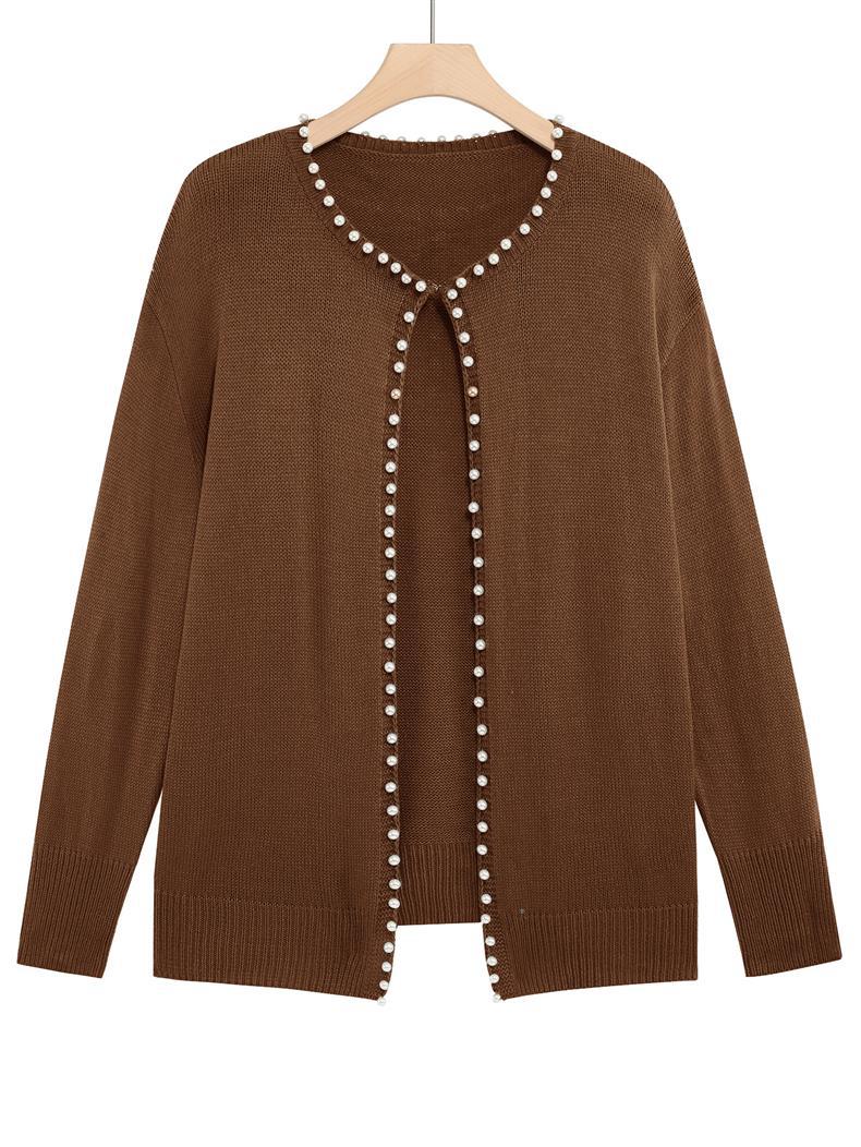 Женский кардиган с круглым вырезом и жемчужной отделкой, осенне-зимняя коллекция 2025 года, новинка для трансграничной торговли Amazon в Европе и Америке.