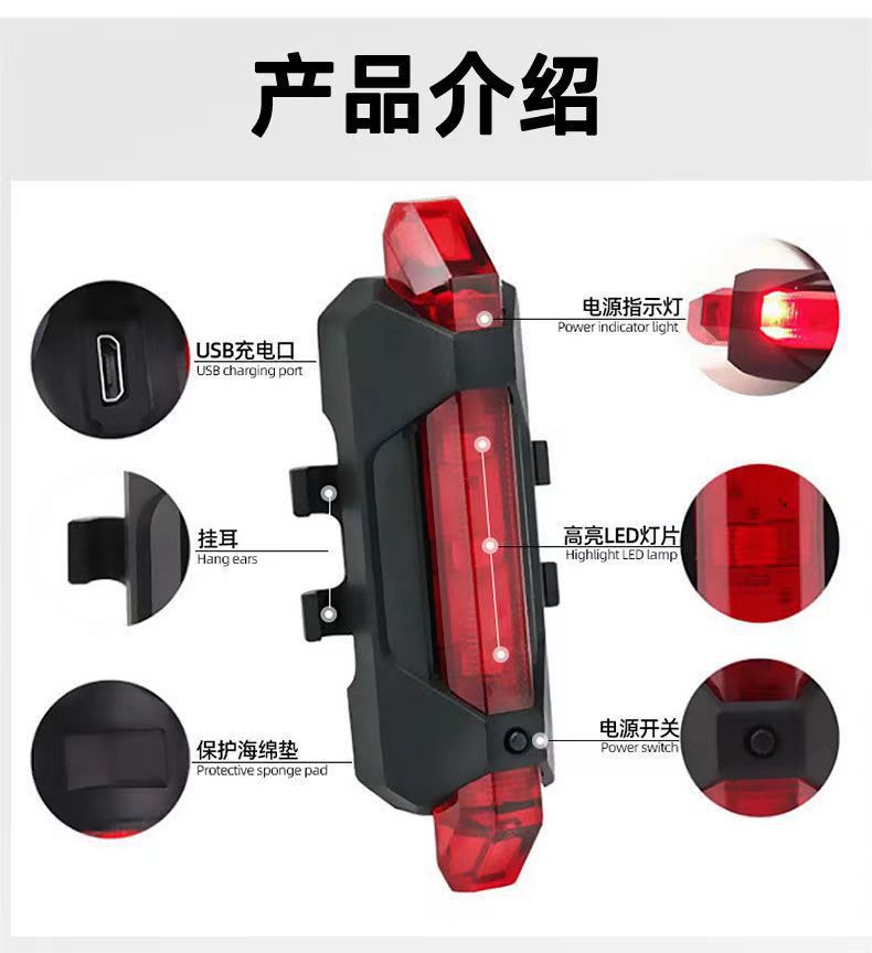 Задний фонарь для велосипеда, USB-зарядка, вспышка, ночная езда на велосипеде, предупреждение о безопасности, задний фонарь для горного велосипеда, высокая яркость, водонепроницаемые аксессуары для велоспорта