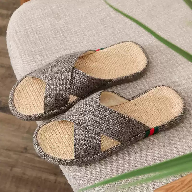 Нескользящие и бесшумные четыре сезона домашние конопля-кросс-перетаскивание льняные тапочки женские летние комнатные мужские дышащие толстые подошвы
