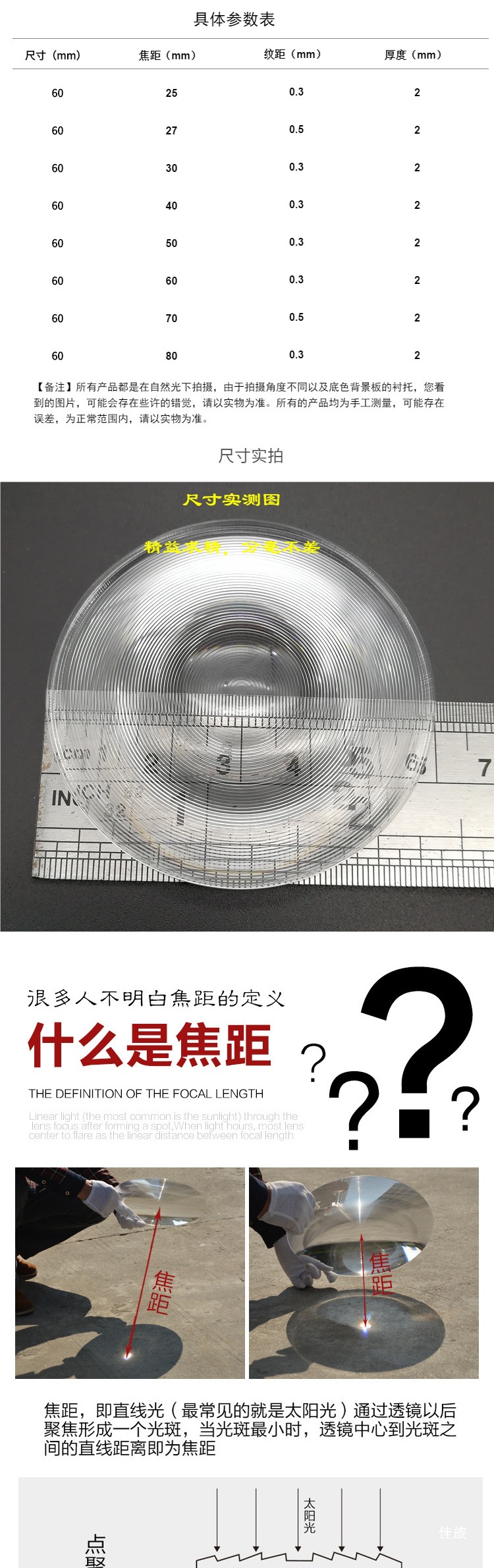 Круглая диаметром 60 мм линза Френеля, светодиодное освещение, оптическая линза Френеля с мелкой резьбой, круглая конденсаторная линза
