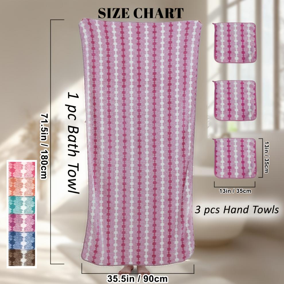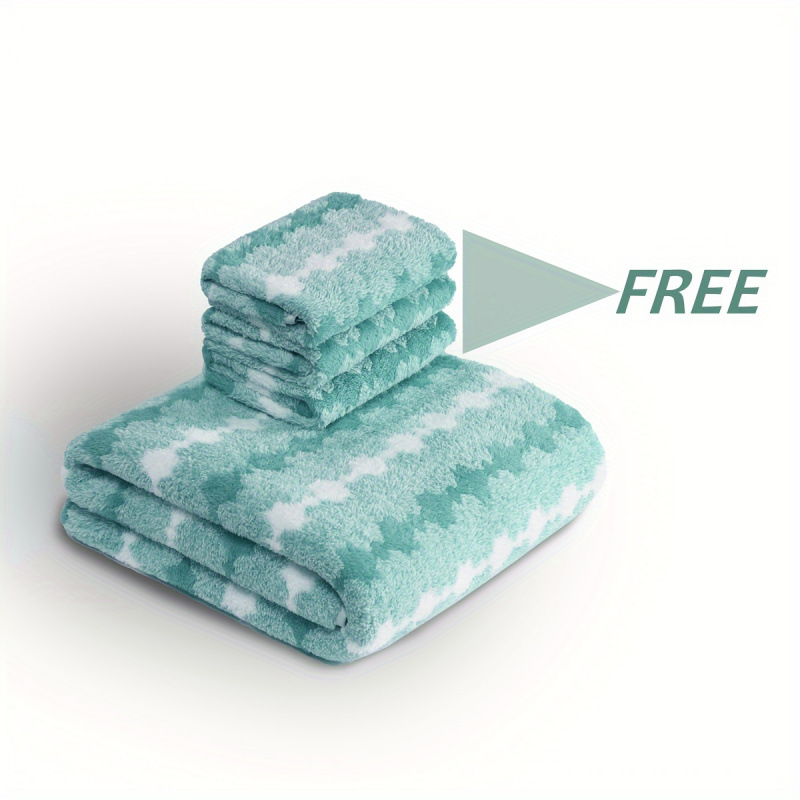 宽条深浅条珊瑚绒印花毛巾浴巾套装吸水干发跨境礼品网红