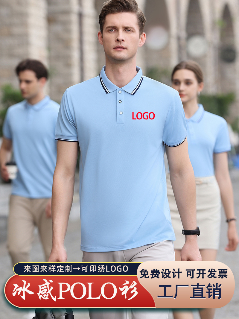 Рубашка-поло из ледяного шелка для работы с нанесенным логотипом, корпоративная рабочая униформа с воротником-поло, коротким рукавом, вышивкой и печатным текстом, быстросохнущая.
