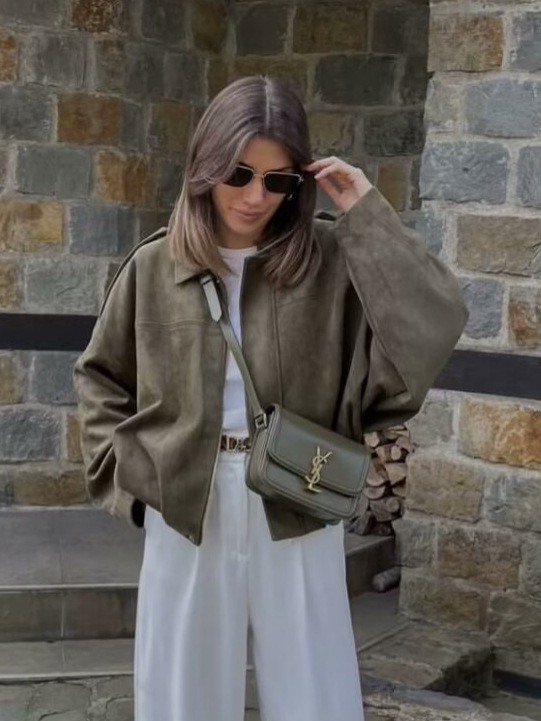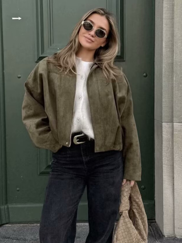 2025 весна и осень европейская и американская пилотная куртка с рукавами летучей мыши на молнии свободная замшевая текстура куртка женский повседневный топ B6