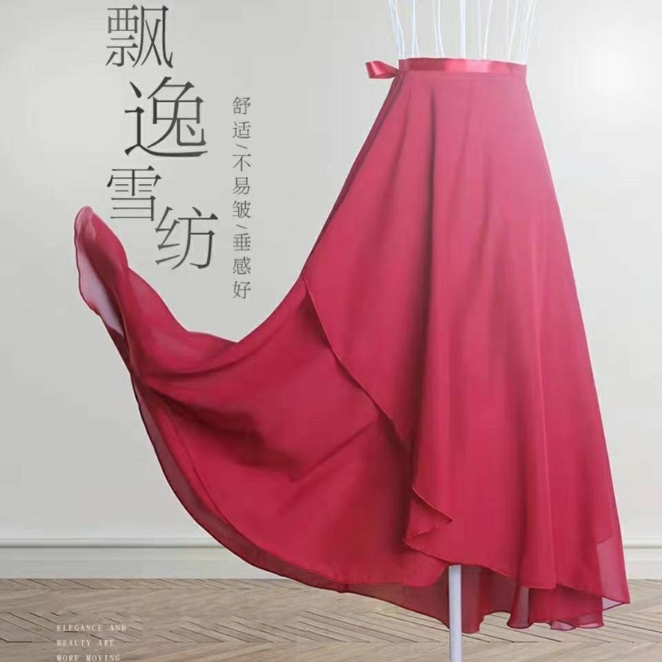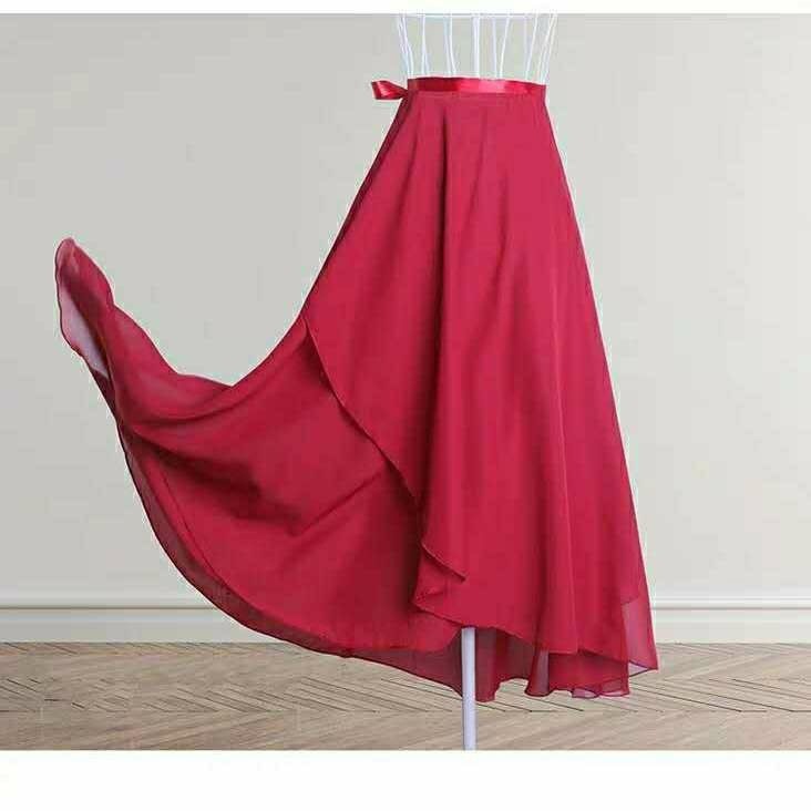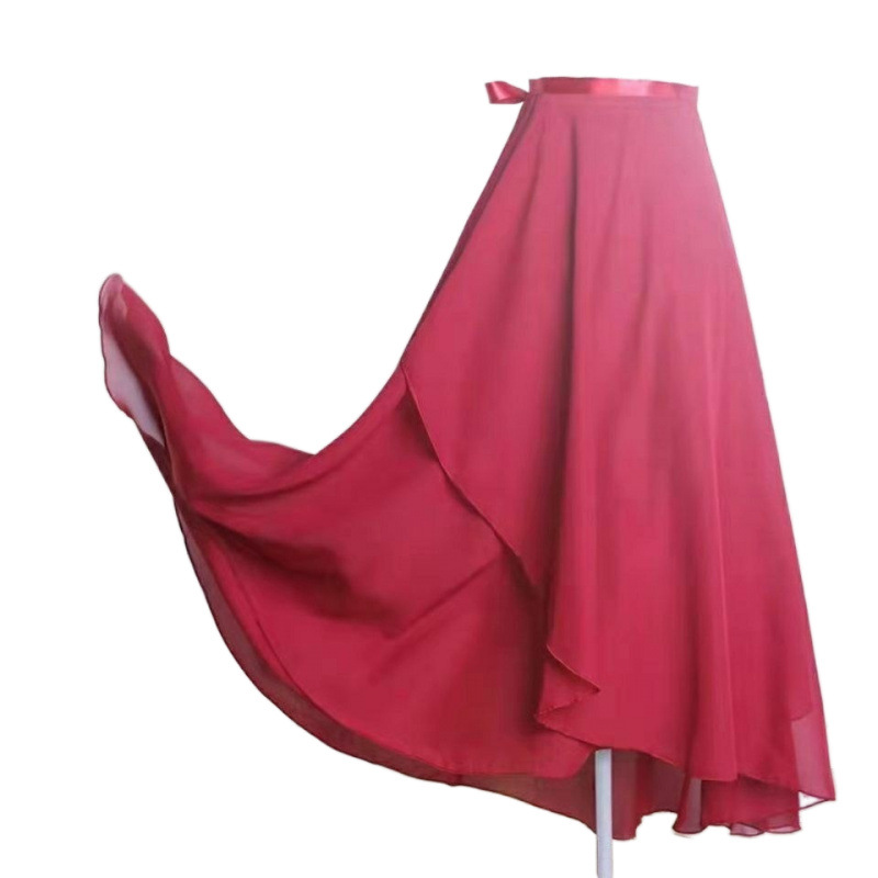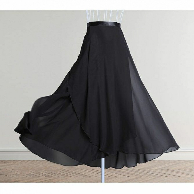 Длинная юбка-балетка из шифона, кружевная, на шнуровке, в пол, 80 см, для танцев и тренировок.