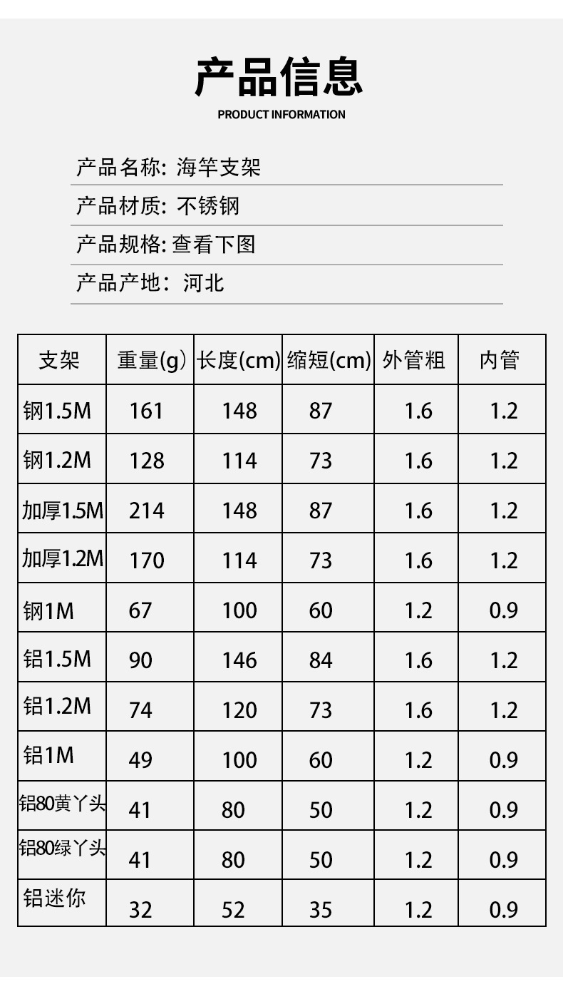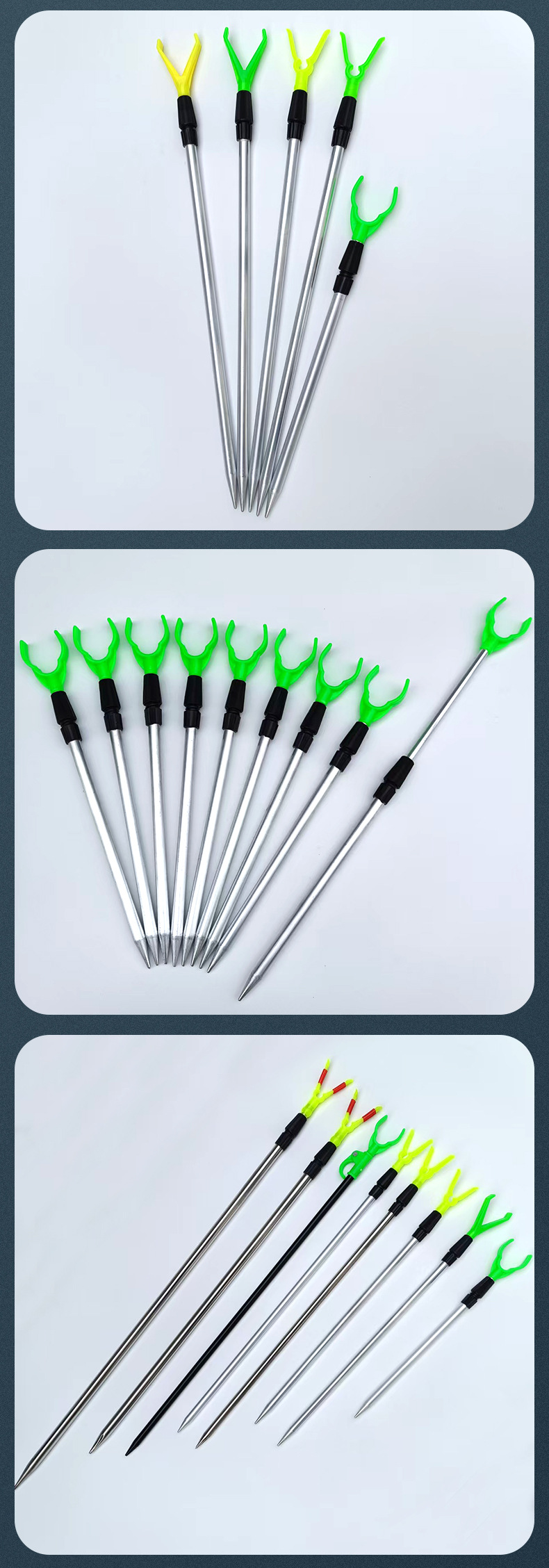 Нержавеющая сталь 1m (желтая головка); Нержавеющая сталь 1.2m (желтая головка); Нержавеющая сталь 1.5m (желтая головка); Алюминиевый сплав 1m (желтая головка); Алюминиевый сплав 1m (зеленая головка); Алюминиевый сплав 1.5m (желтая головка); Алюминиевый сплав 1.2m (желтая головка); Алюминиевый сплав 80cm (желтая головка); Алюминиевый сплав 80cm (зеленая головка); Мини-кронштейн 50cm (желтая головка); Мини-кронштейн 50cm (зеленая головка); Нержавеющая сталь утолщенная 1.5m (головка желтая)