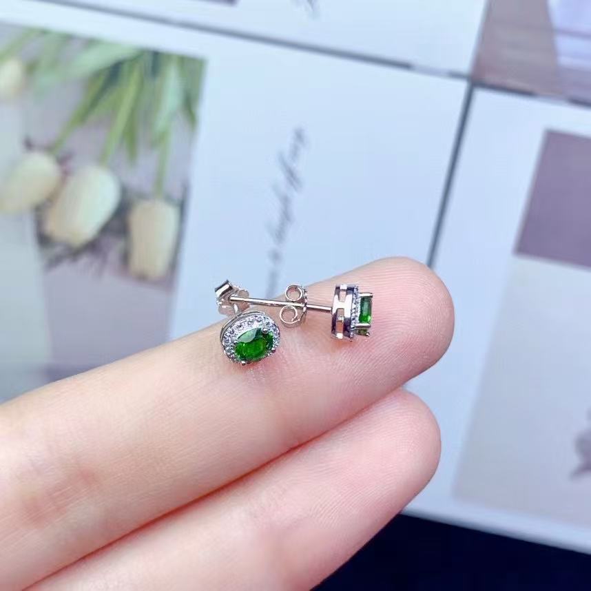 Серьги из стерлингового серебра S925 с инкрустацией из натурального диопсида, простая и модная оправа с бриллиантами, универсальные и изысканные украшения с овальными драгоценными камнями.