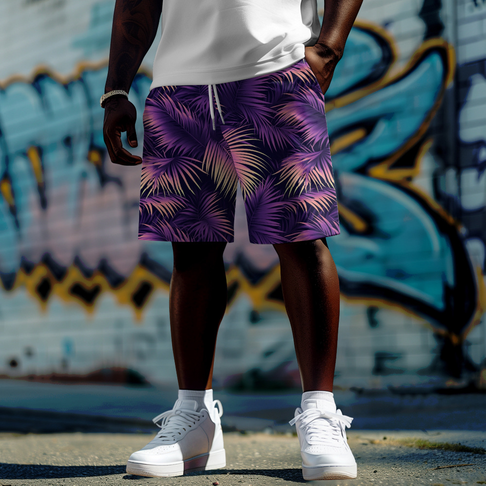 Модные универсальные шорты больших размеров с тропическим растительным принтом для лета, повседневные свободные мужские шорты