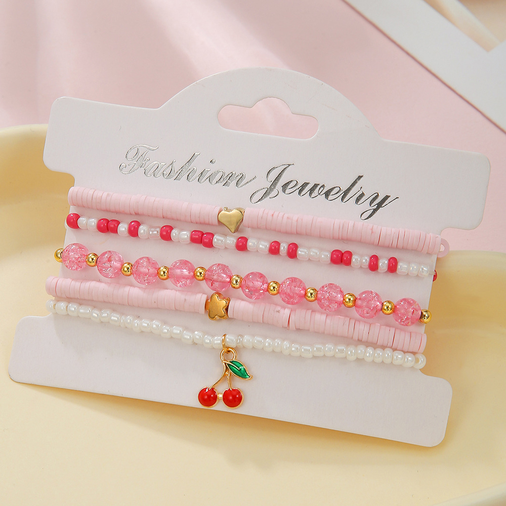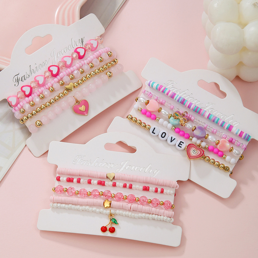 Новый любовный кулон стеклянный браслет из бисера розовая девушка серия многослойные рисовые бусы из мягкой керамики