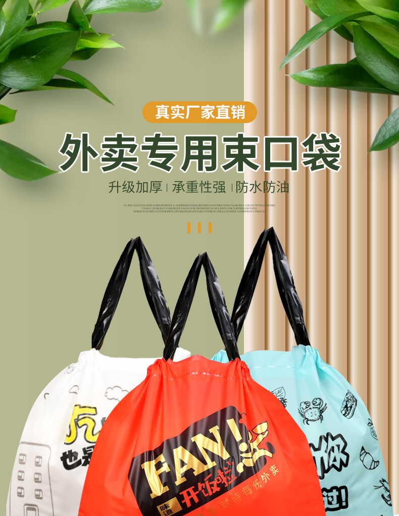 Готовые пакеты для упаковки еды на вынос для легких закусок с жареной курицей, одноразовые пакеты на шнурке для еды в китайском стиле с индивидуальным логотипом.