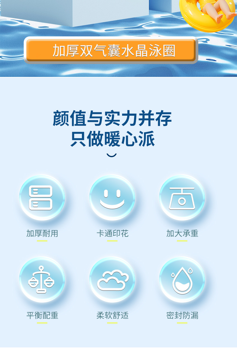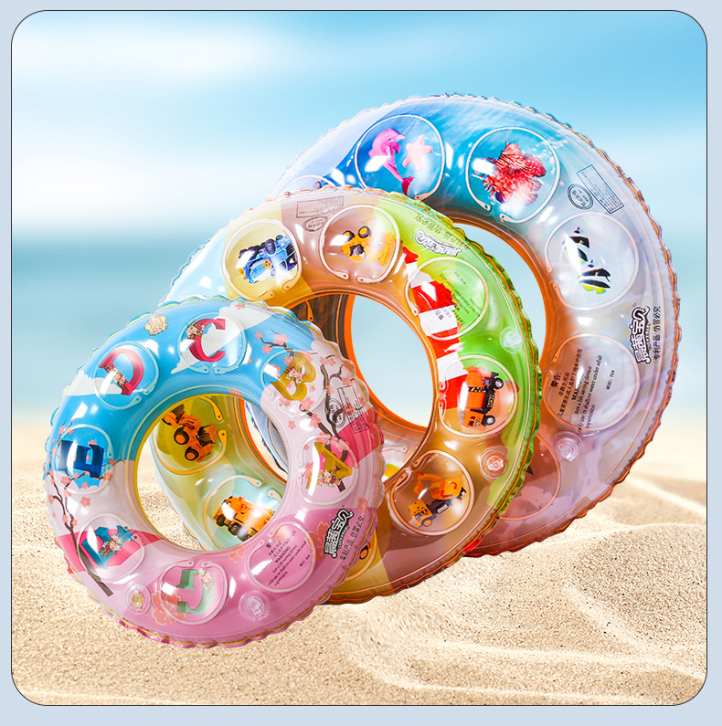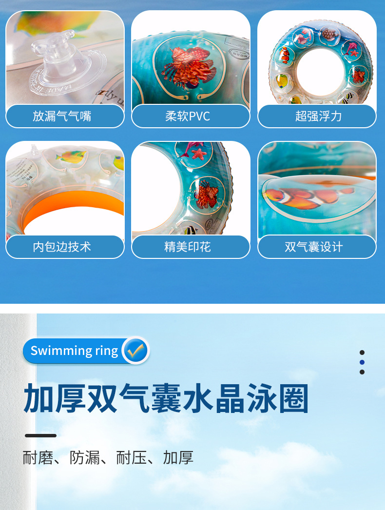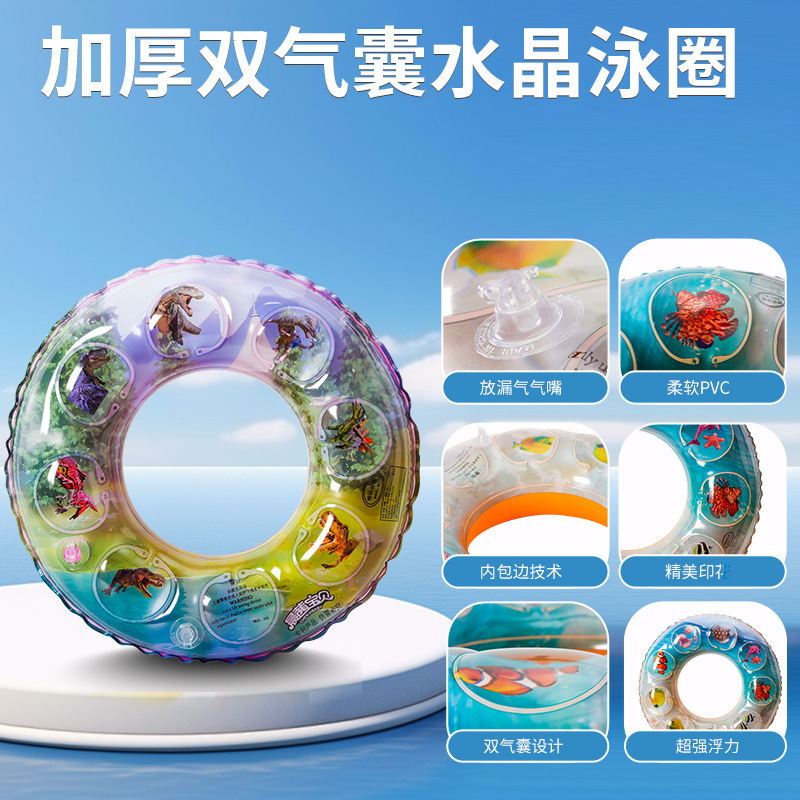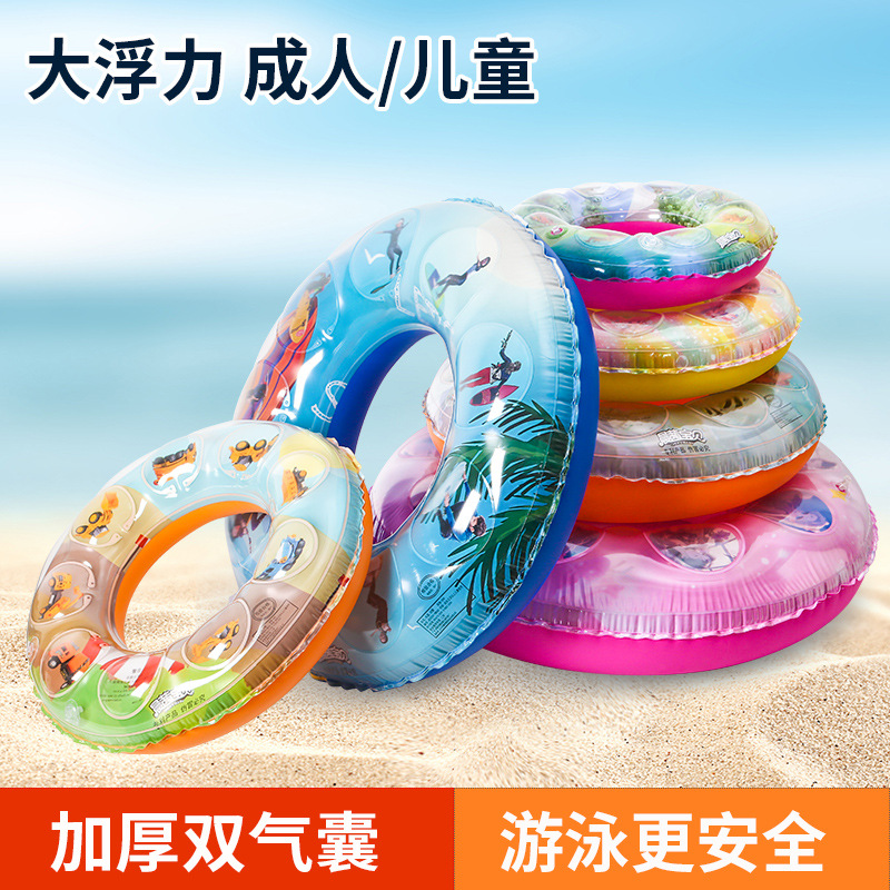 Летом утолщение детских плавательных кругов Двойной подушки безопасности надувной хрустальный плавательный круг прозрачный пластик двухслойный хрустальный круг оптом