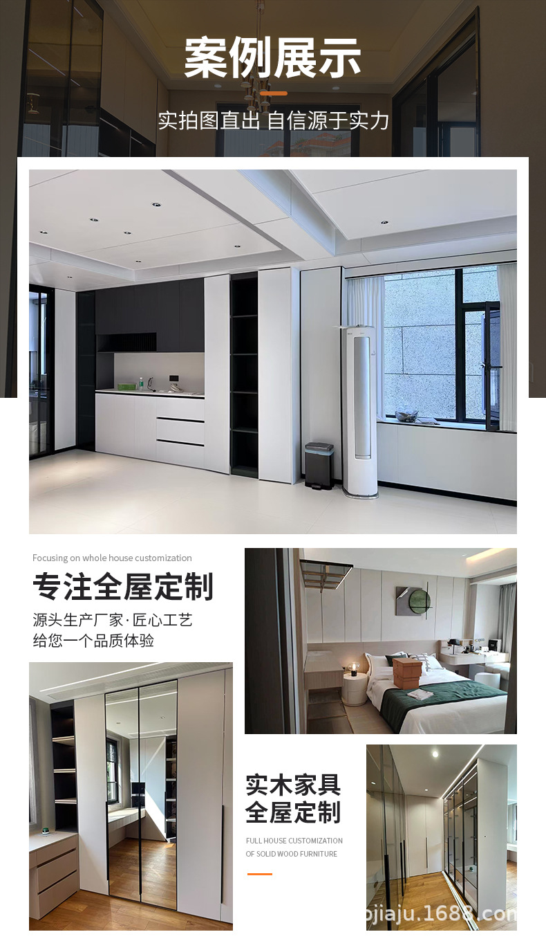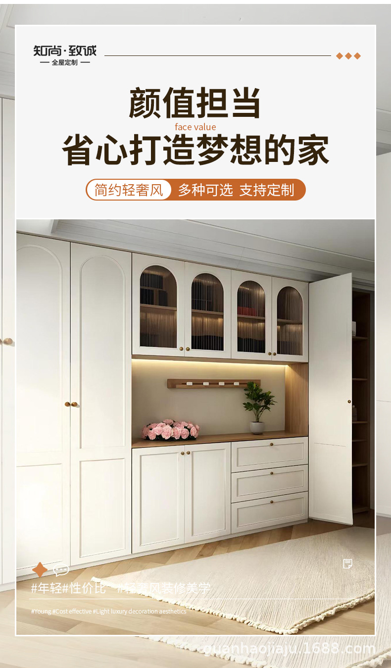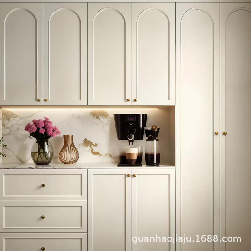 Встроенный шкаф-купе в стиле лёгкой роскоши кремового цвета для виллы, изготовленный на заказ в Дунгуане.