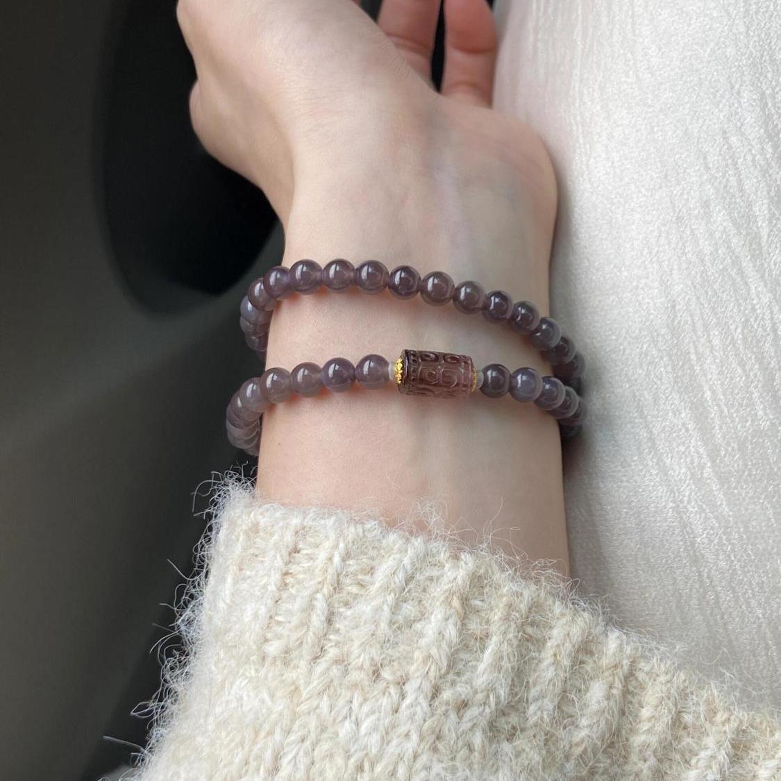 Натуральный камень и Tian Yu Yu фиолетовый двуручный браслет новый китайский модный темперамент
