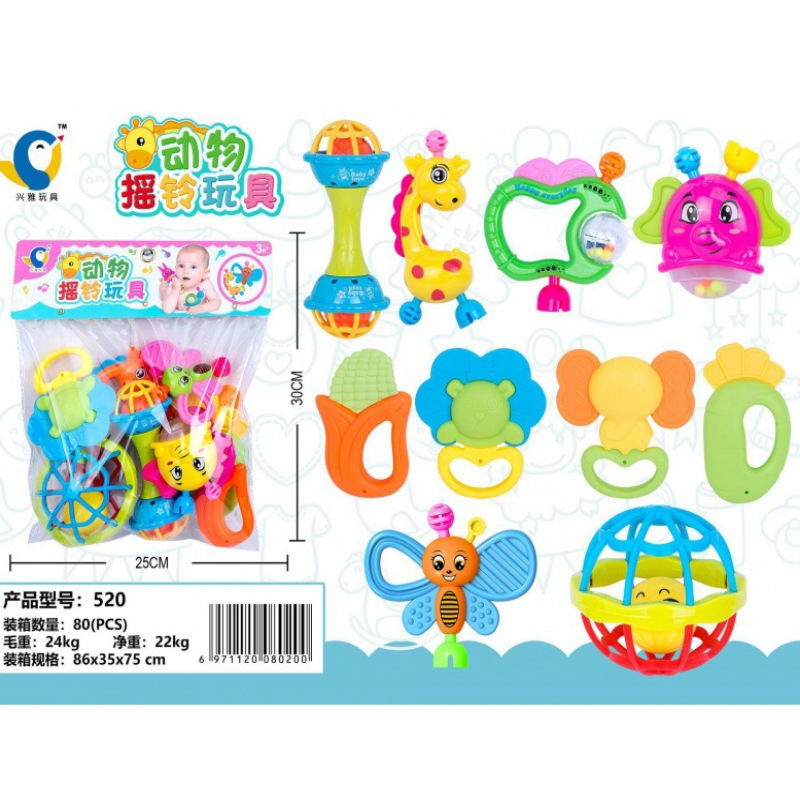 注:摇铃颜色,部分款式随机,牙胶片(水果款/钥匙款/海洋款)随机。套装数量不变。