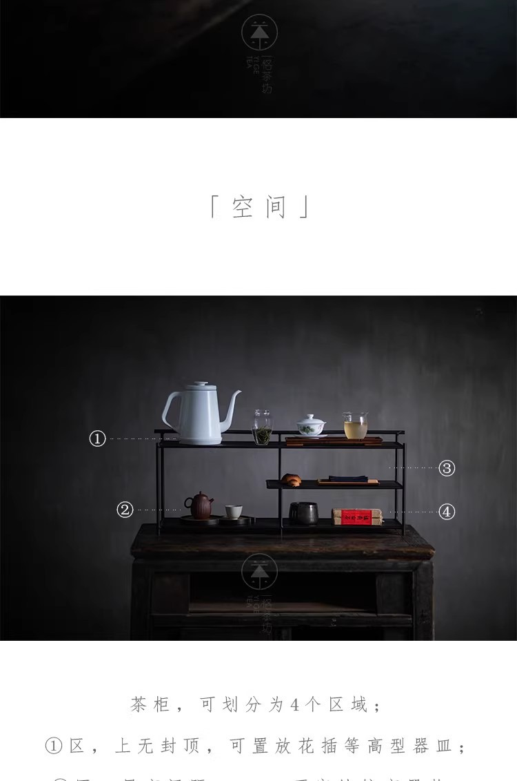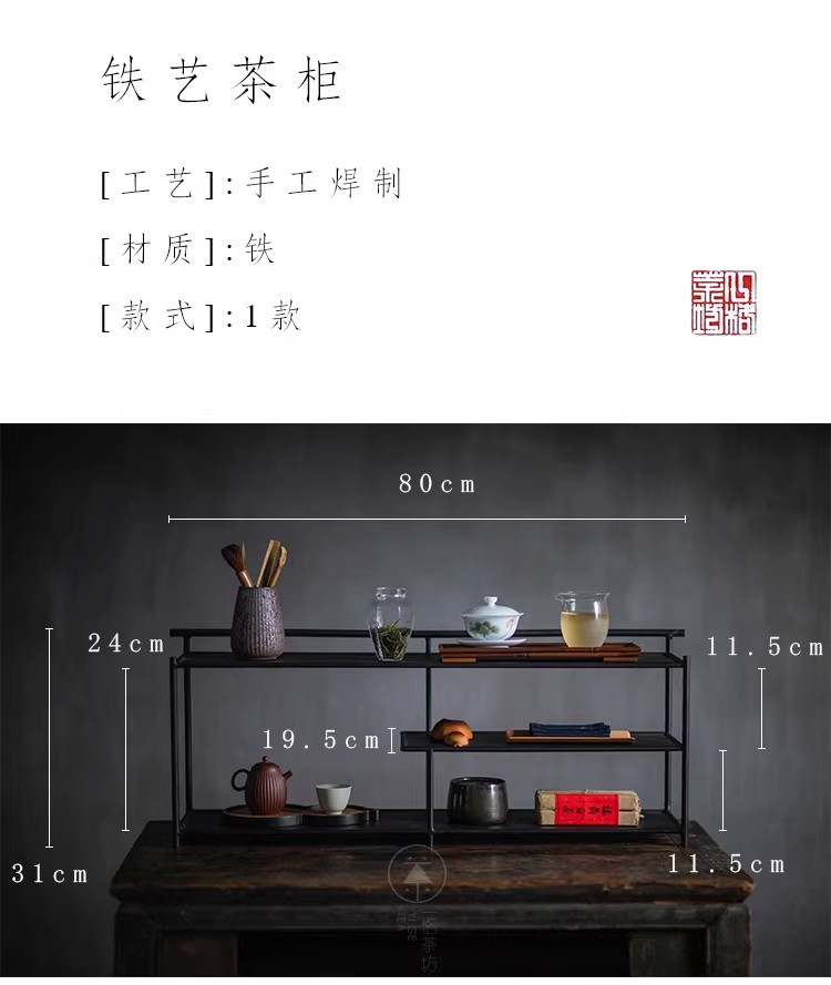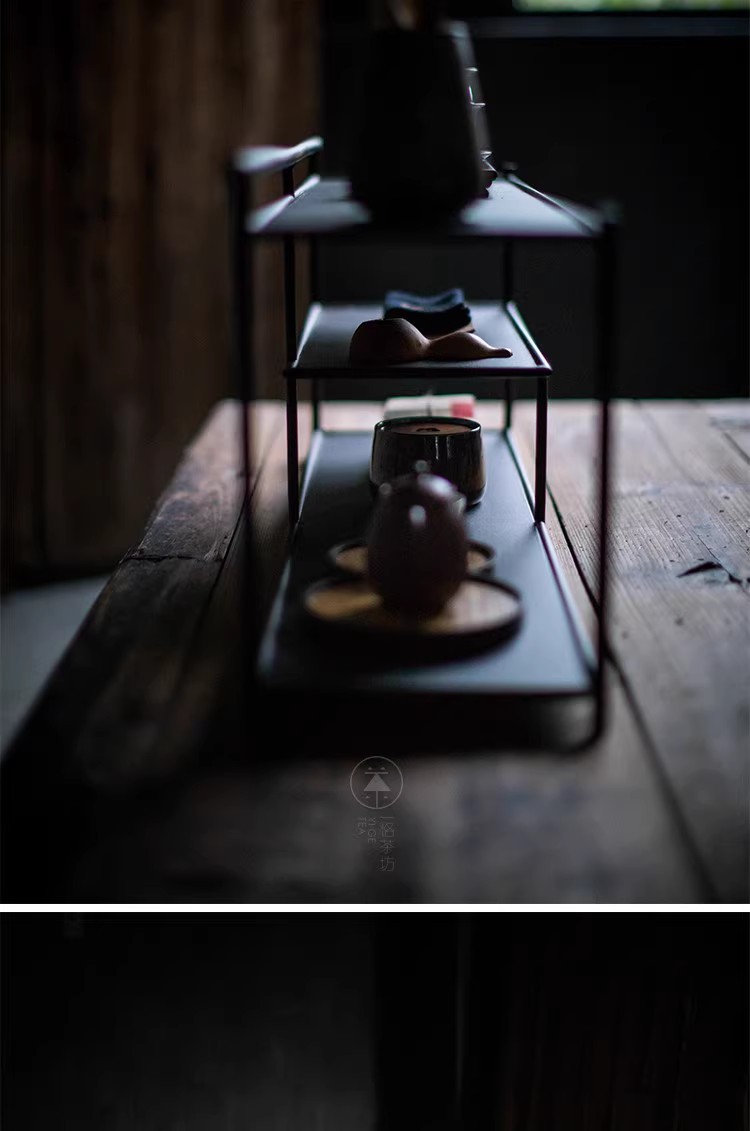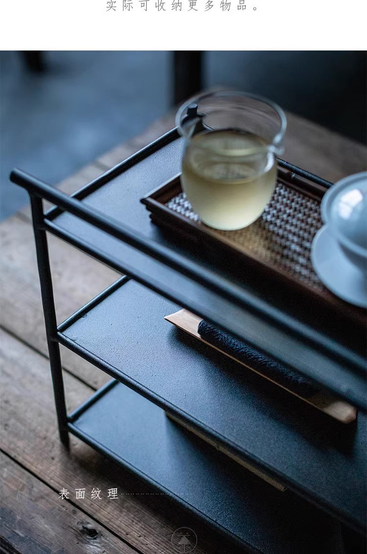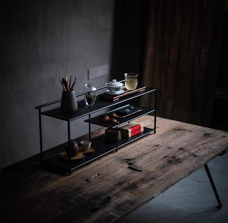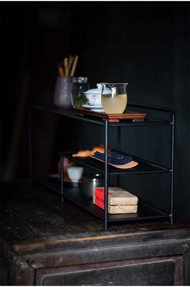 Железная чайная хижина, черная стойка Bogu, чайный набор, стеллаж для хранения, чайная комната, чайное пространство, настольный шкаф для чайного сервиза