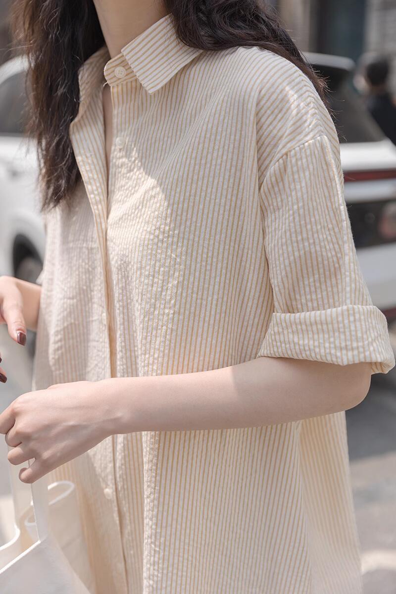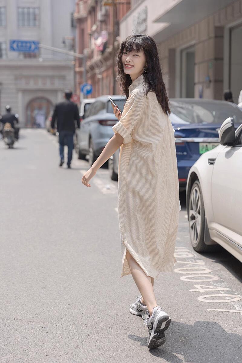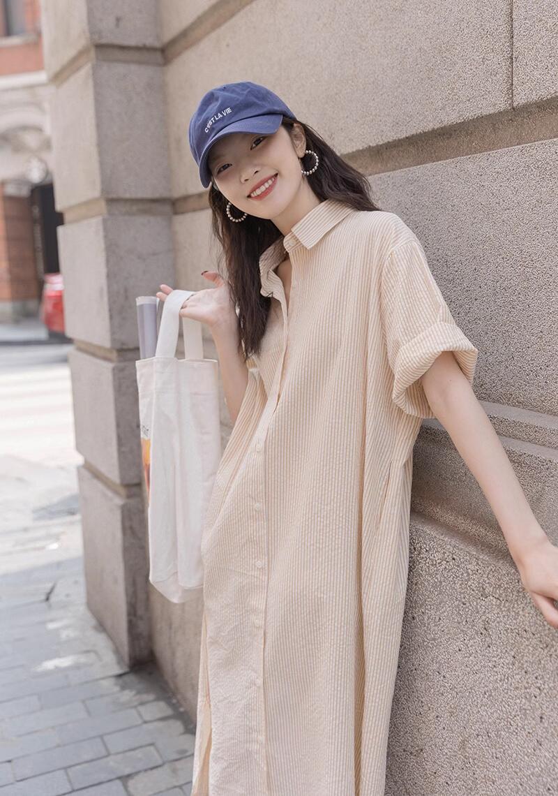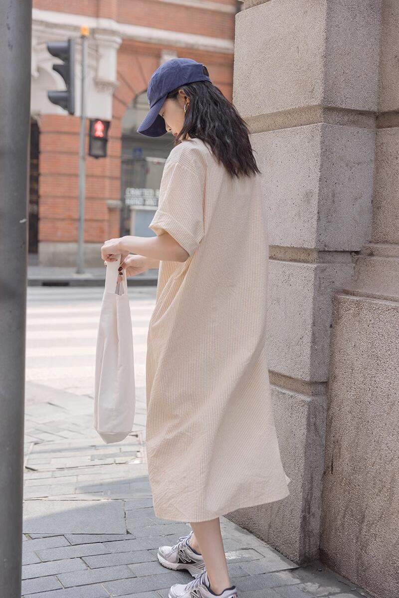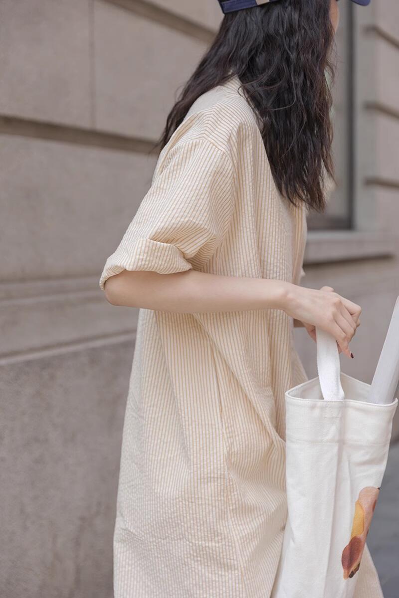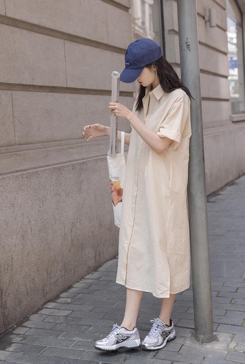 Летнее платье-рубашка в полоску больших размеров, свободного кроя, для беременных 2025 года, утягивающее, в стиле интернет-знаменитостей.