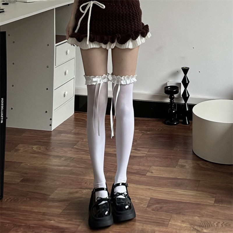Академический ветер бант Японский кружевной lolita кружевной кружевной колледж носки милые чулки на коленях