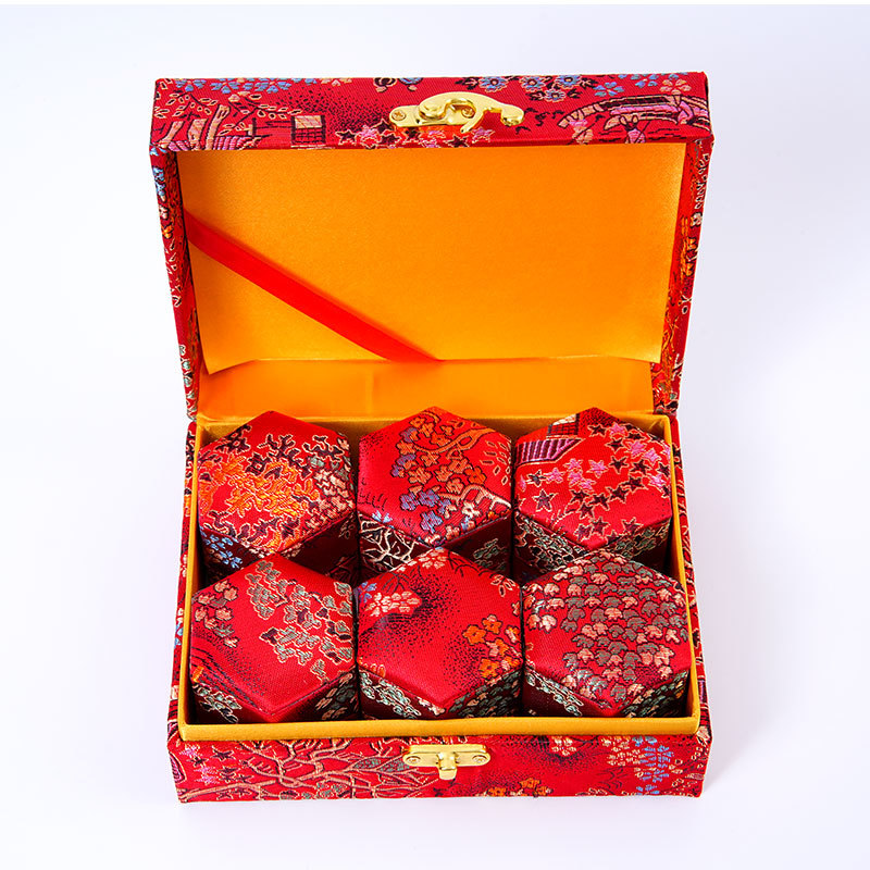 Шестиугольная парчовая коробка с вышивкой и индивидуальным логотипом An Gong Pills парчовая коробка таблетки китайской медицины подарочная упаковка пустая коробка по индивидуальному заказу