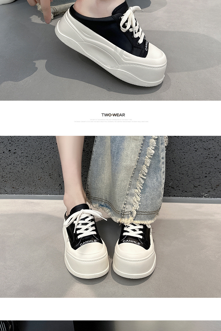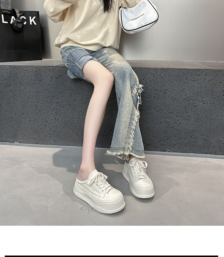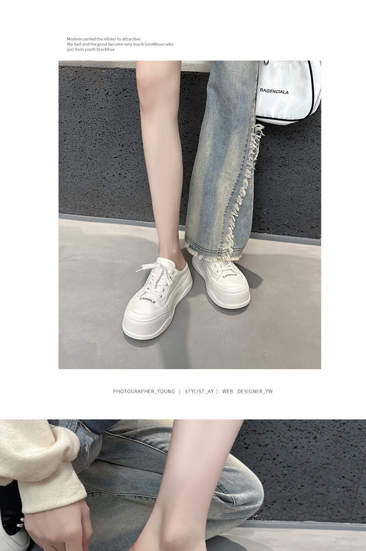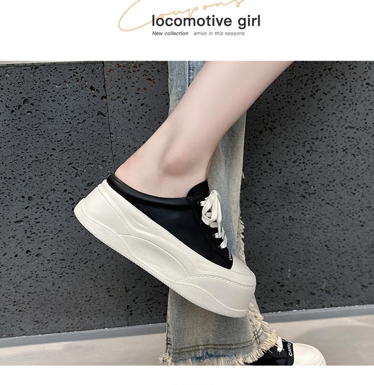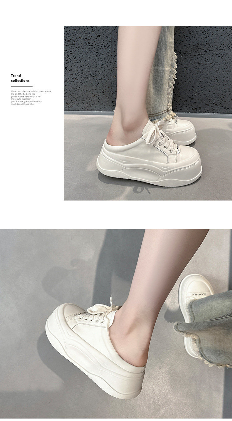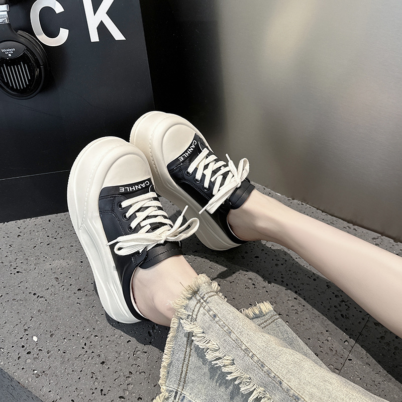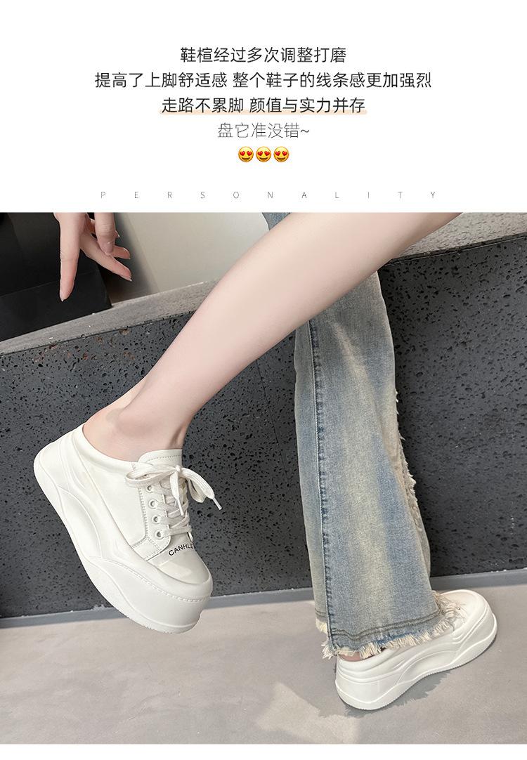 Толстая подошва увеличивается с половиной тапочек для женщин летом носить на улице 2025 новые дикие повседневные без каблуков маленькие белые туфли