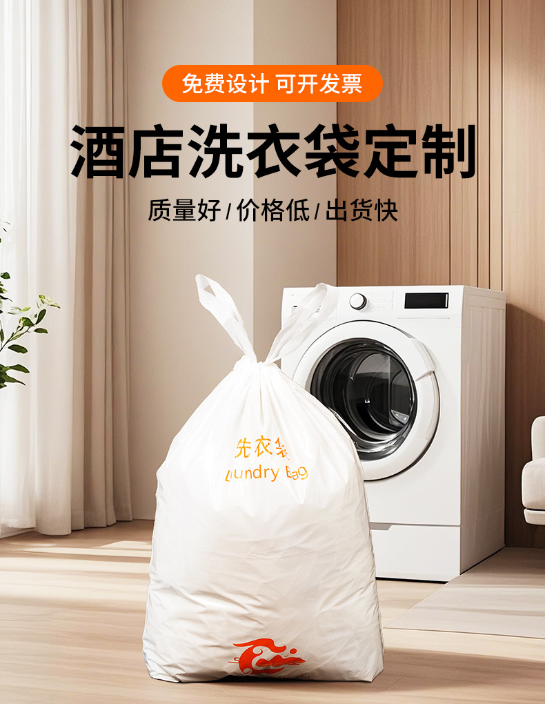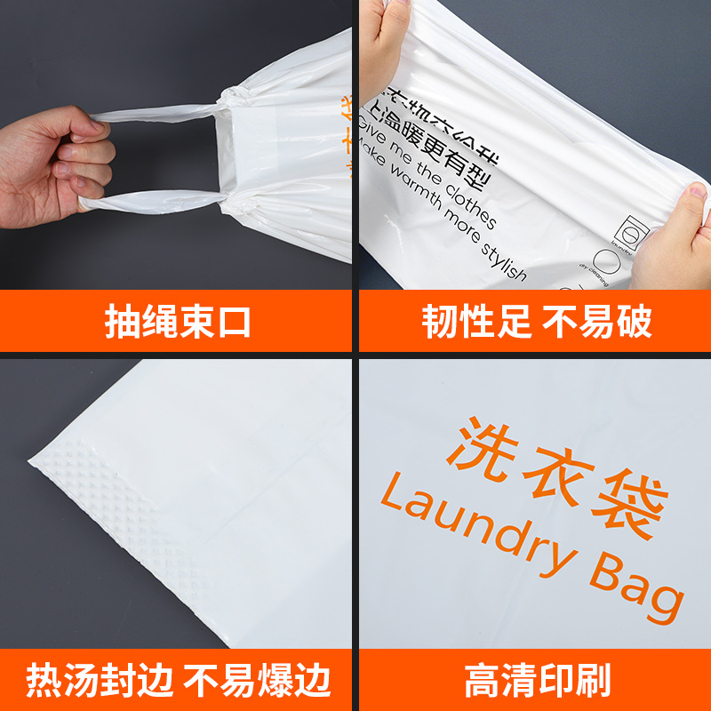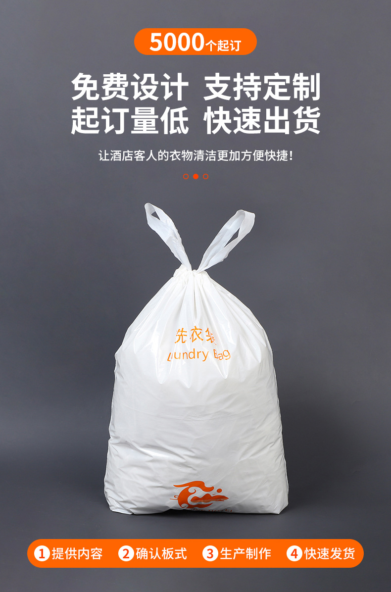 Одноразовый мешок для белья для отеля, индивидуальный пластиковый мешок для белья с завязками для отеля B&B, сумка для хранения одежды с логотипом