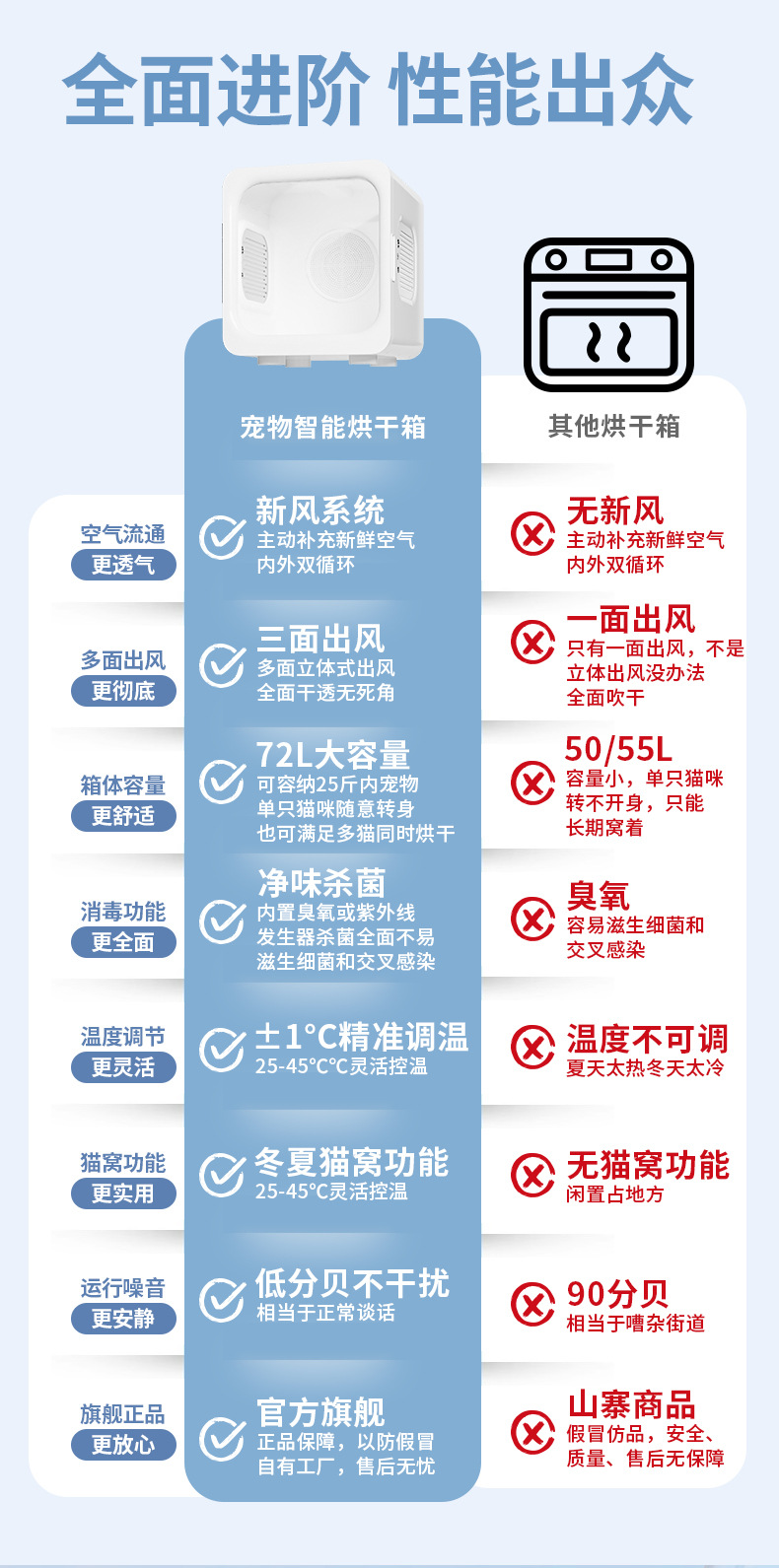 [72L Стандартное издание] 360°Охватывающий поток воздуха + 3 режима частотного преобразования + интеллектуальное поддержание постоянной температуры + съемное комфортное окно; 【72L Pro версия】Высокоскоростной воздушный поток + 5 режимов работы + интеллектуальное управление температурой + регулируемая скорость ветра + съемное успокаивающее окно; 【72L APP версия】Высокопроизводительный вентилятор с мощным воздушным потоком + отрицательные ионы + 5 режимов + интеллектуальное управление температурой + регулируемая скорость ветра + съемное успокаивающее окно