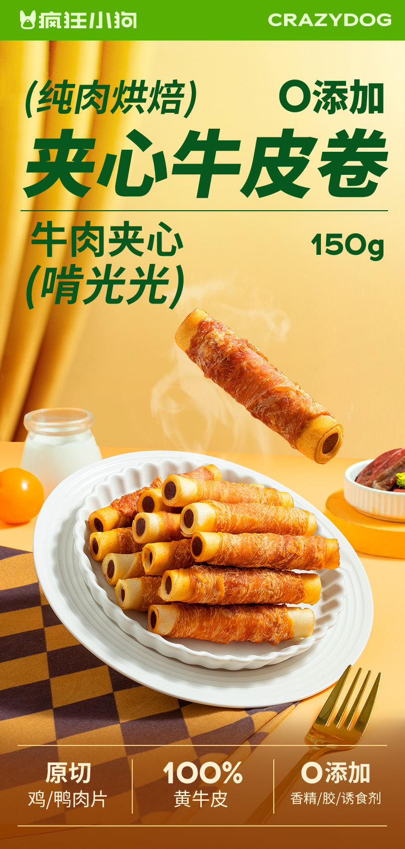 Рулет из чистого куриного говядины 100г; Рулет из чистого утиного мяса и говядины 100г; Рулет из куриной и говяжьей кожи 100г; Рулет из утиного мяса и говядины 100г
