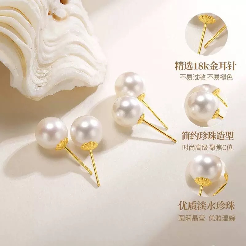 Серьги из чистого золота 18 карат с натуральным пресноводным жемчугом au750, цветные золотые серьги, маленькие свежие, удобные для ушей женские золотые серьги в форме ракушки