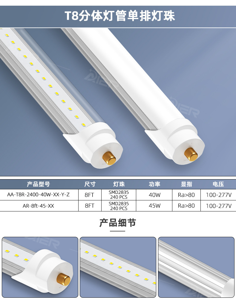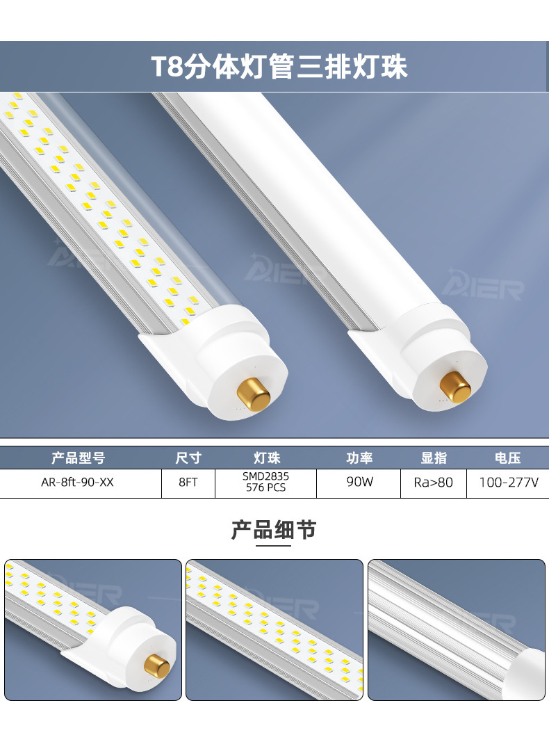 Кронштейн для лампы с тремя доказательствами 2.4m Кронштейн для светодиодной лампы 8 футов с одной иглой и двойной иглой t8 люминесцентная лампа G13 Light Tube T5 Base