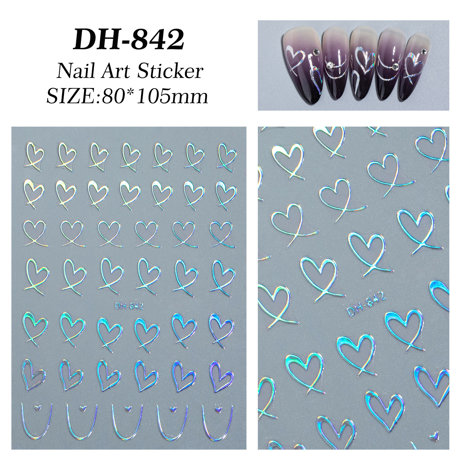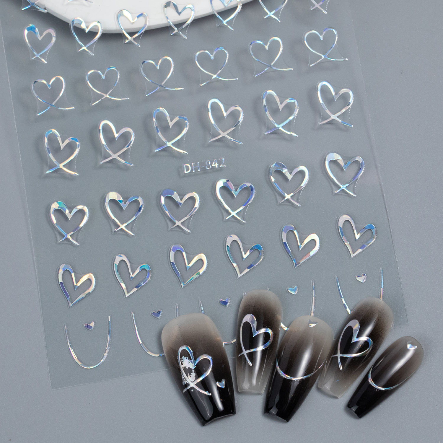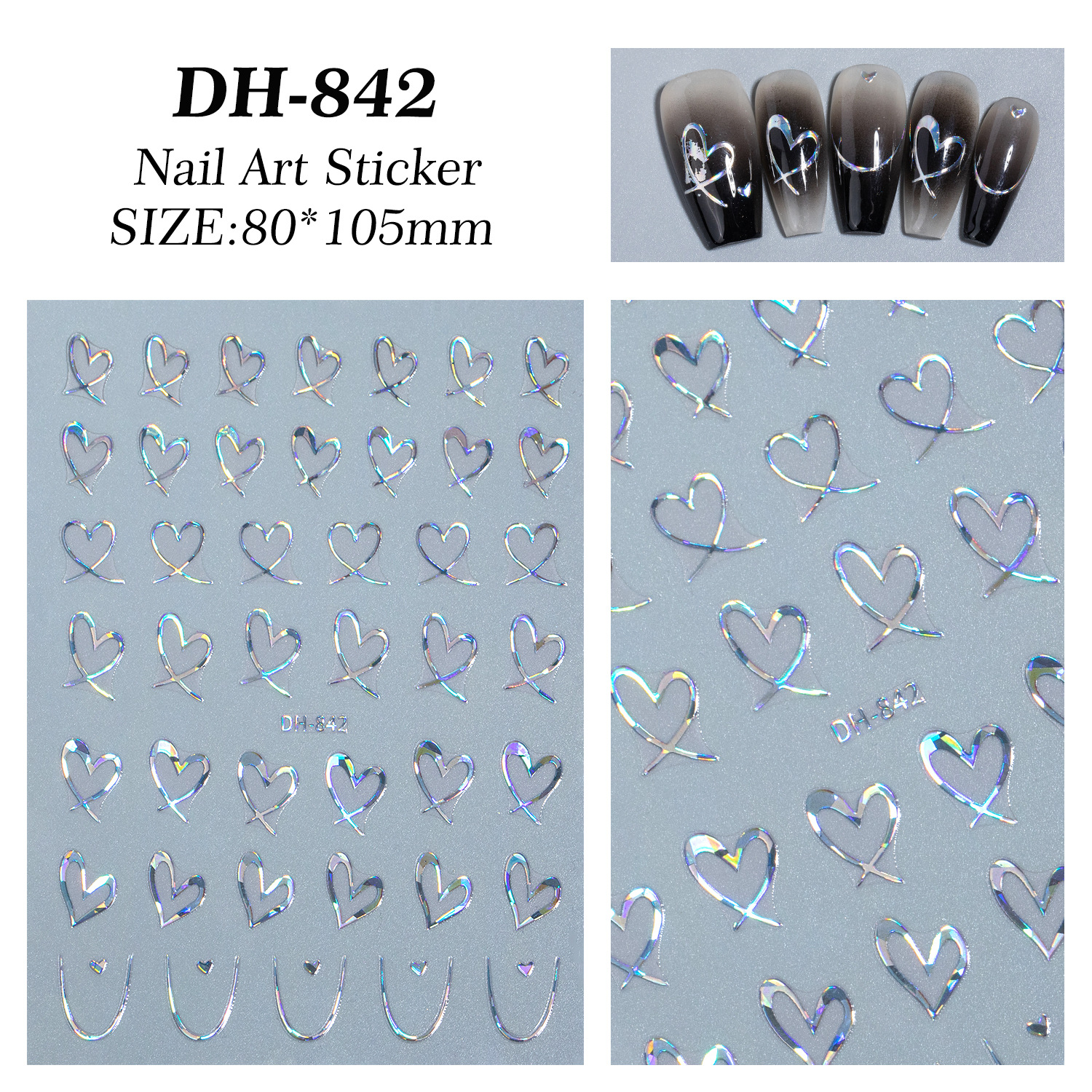 Стильные и изящные наклейки для ногтей в форме сердца, плоские, простые, универсальные, лазерные наклейки для ногтей в форме сердца, аксессуары в стиле DH