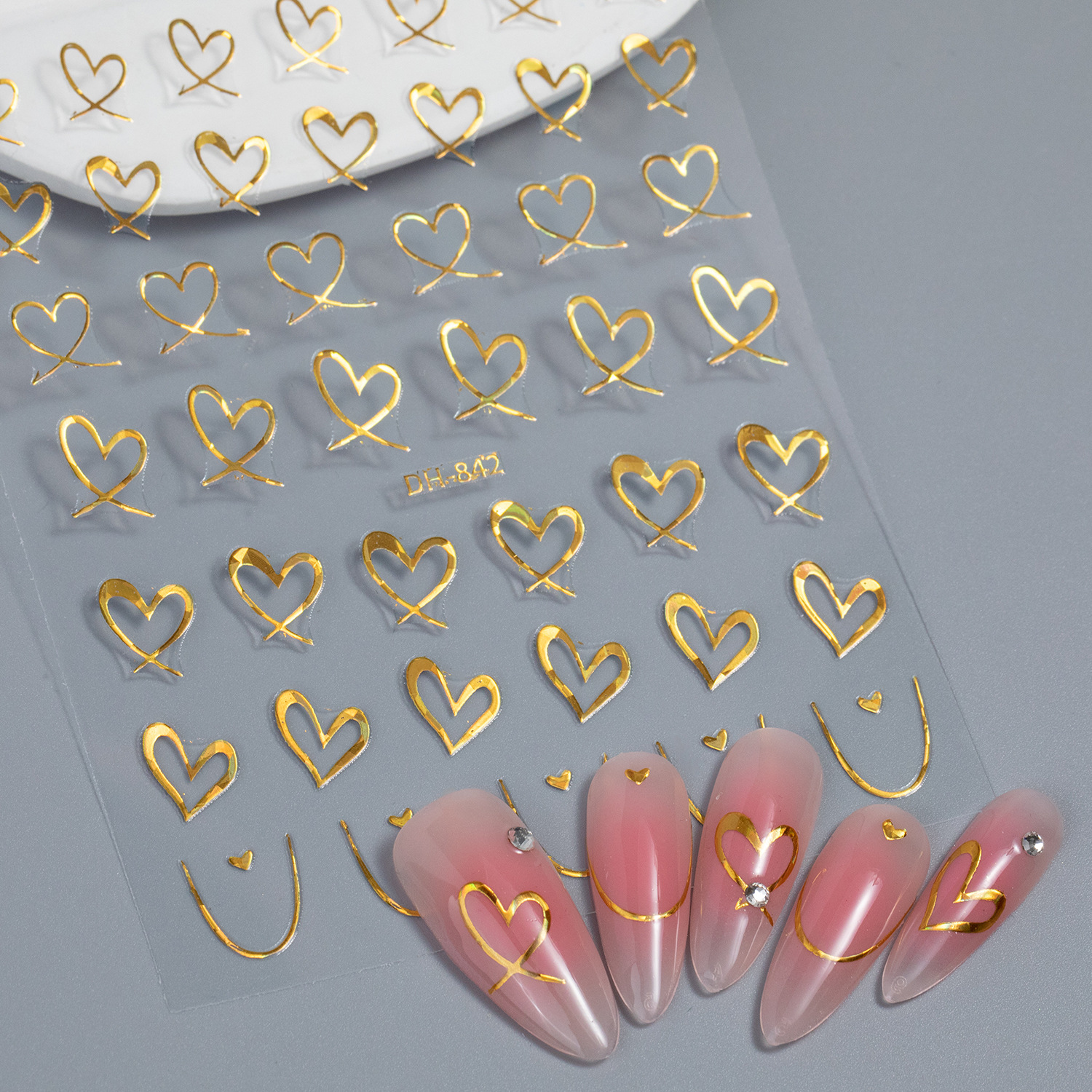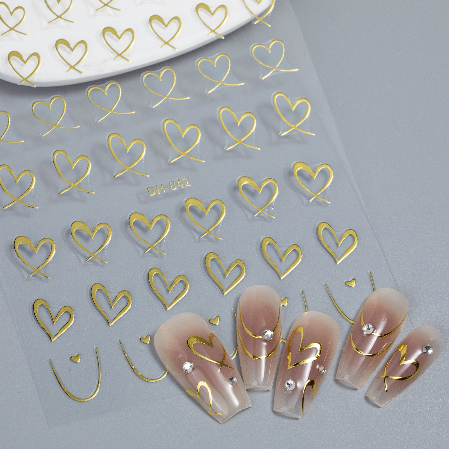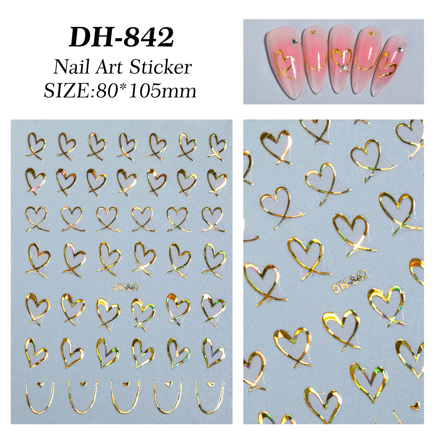 Стильные и изящные наклейки для ногтей в форме сердца, плоские, простые, универсальные, лазерные наклейки для ногтей в форме сердца, аксессуары в стиле DH