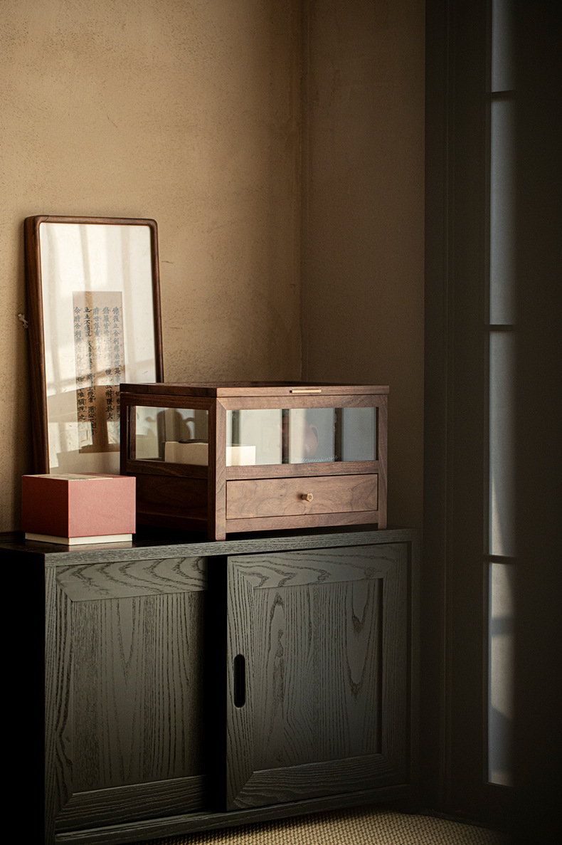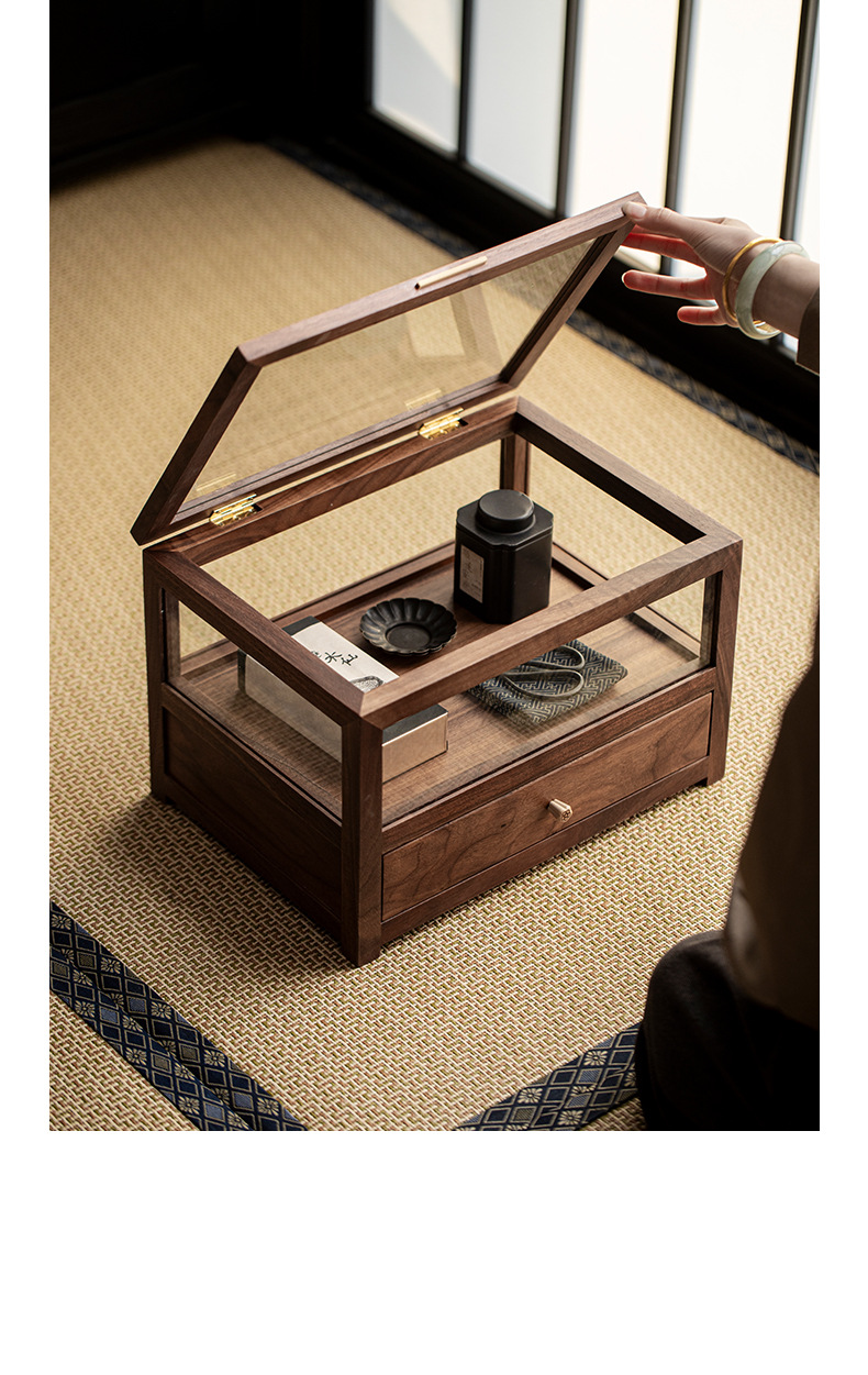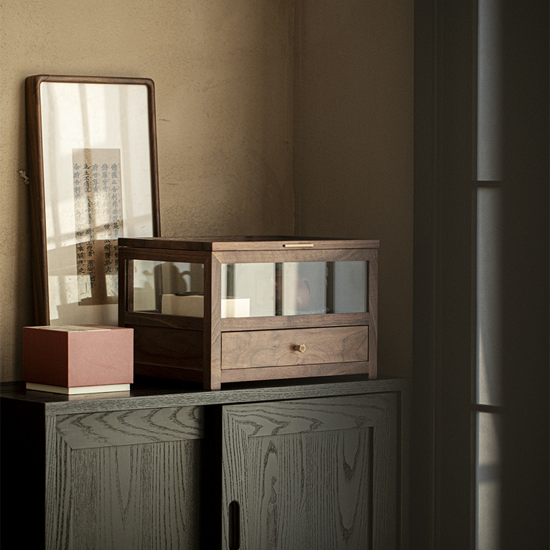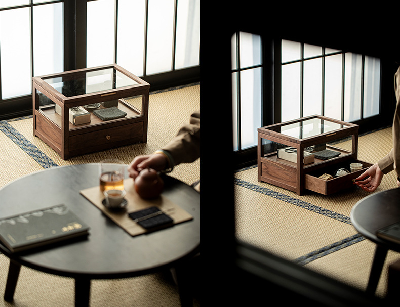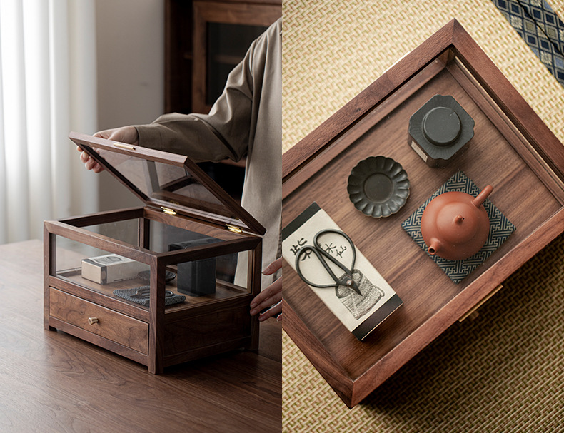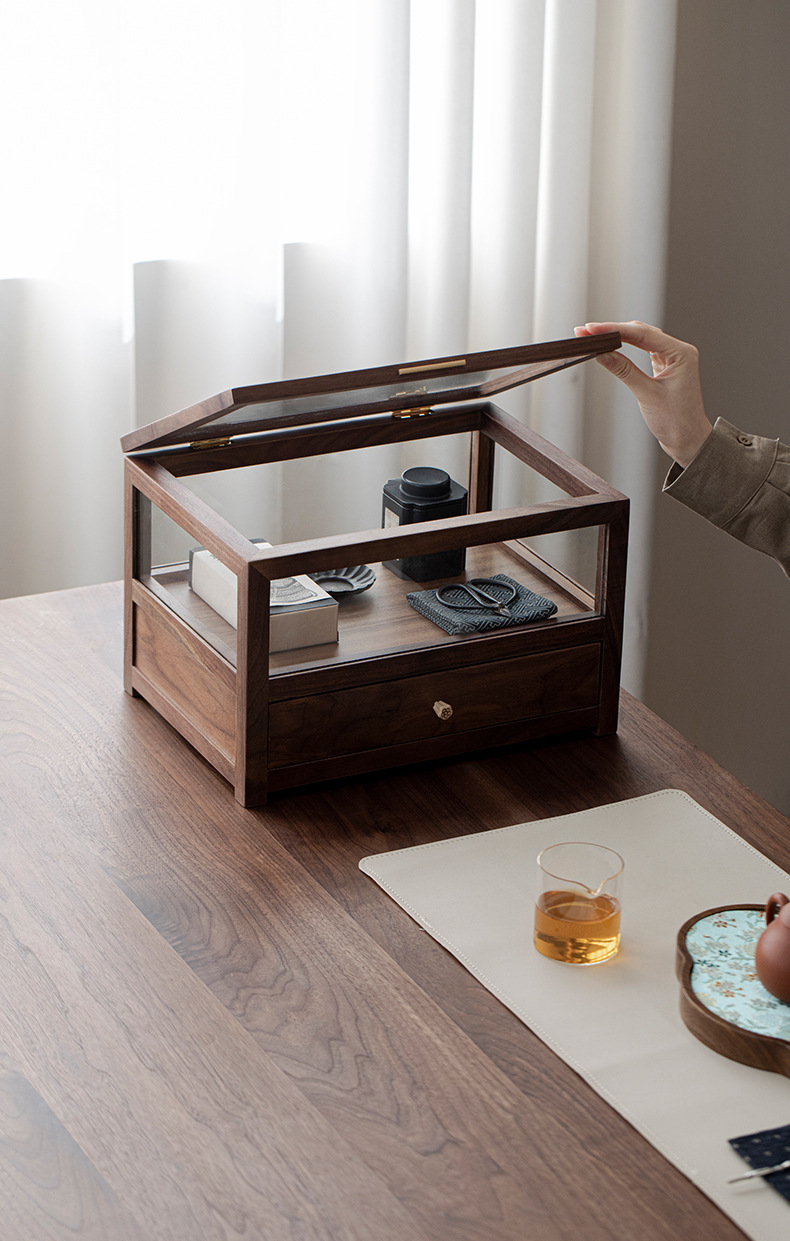 Шкаф для хранения стеклянного чайного сервиза из черного ореха, настольный шкаф, можно сложить с подставкой для чайника и чашки
