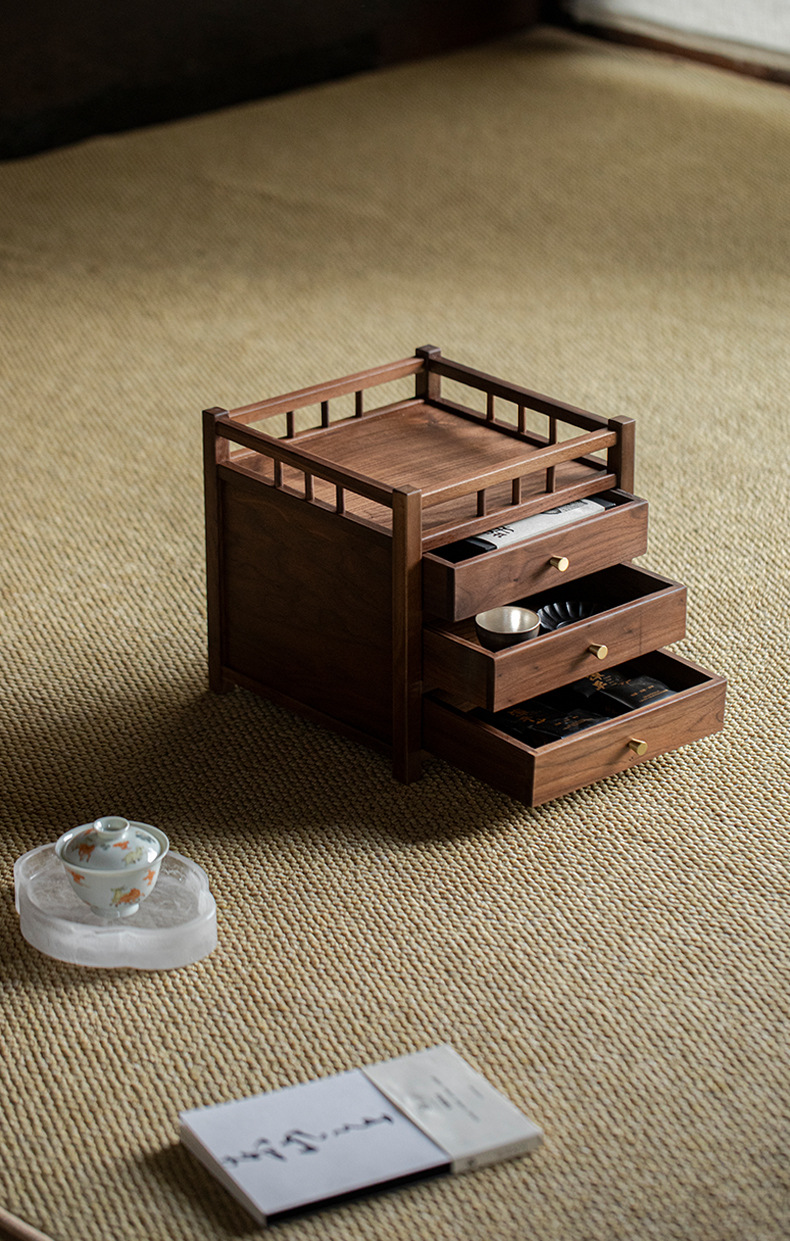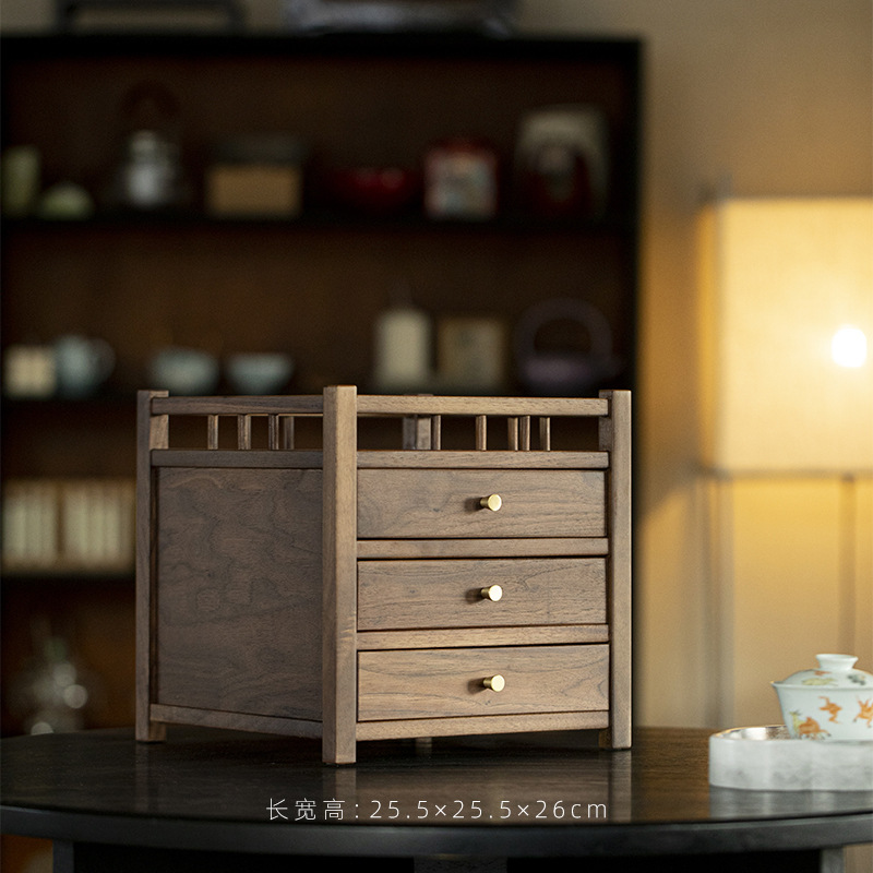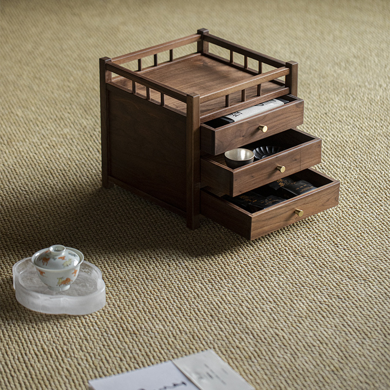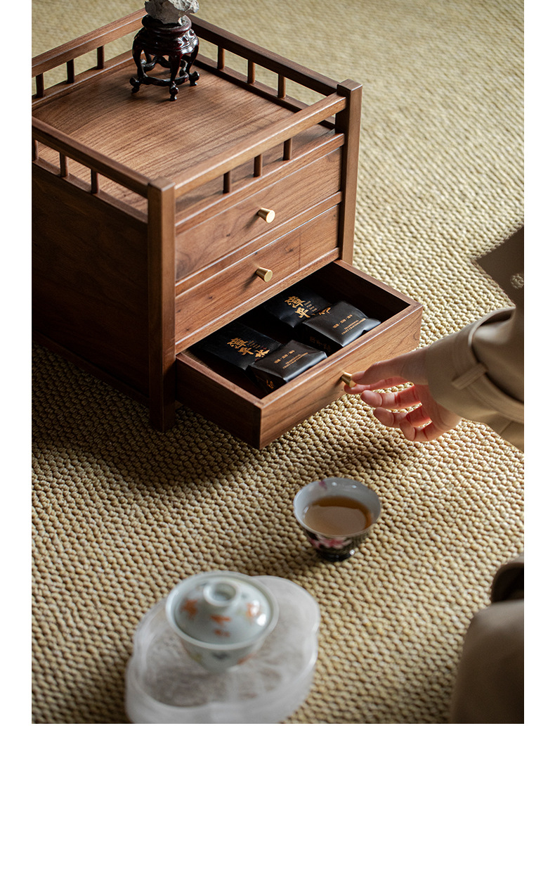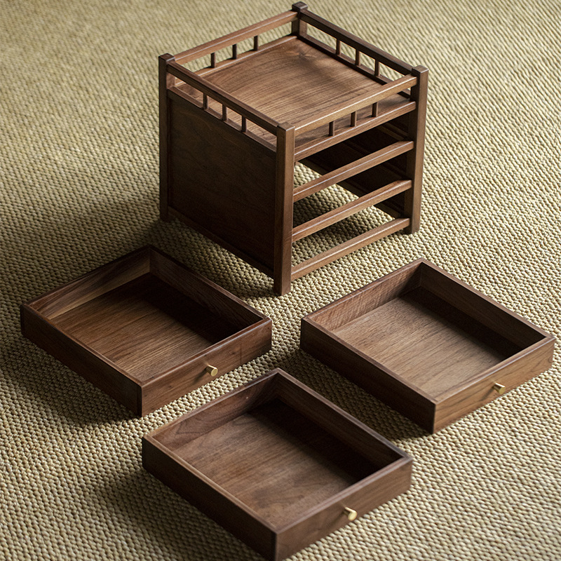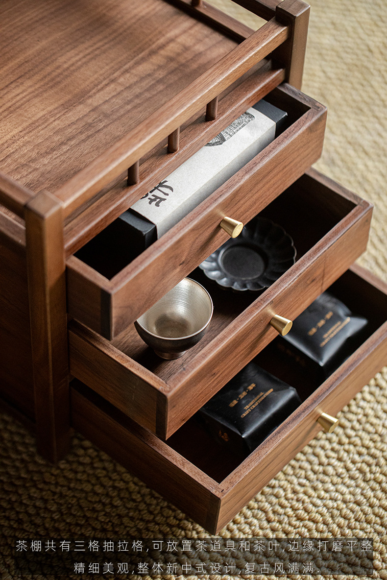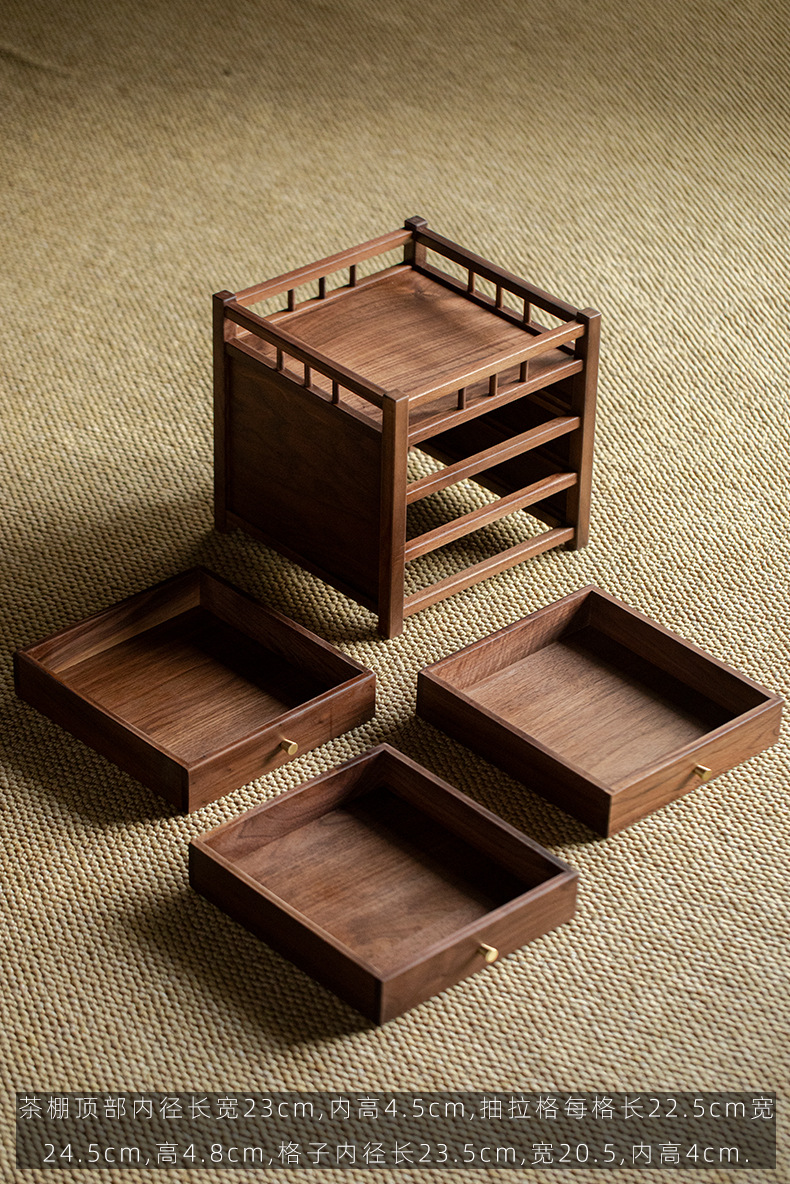 Шкаф для хранения чайного торта из черного ореха, трехслойный ящик для чая Пуэр, выдвижной ящик, стойка Bogu, чайный столик, чайный набор для хранения