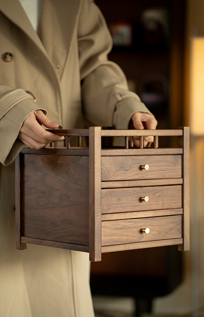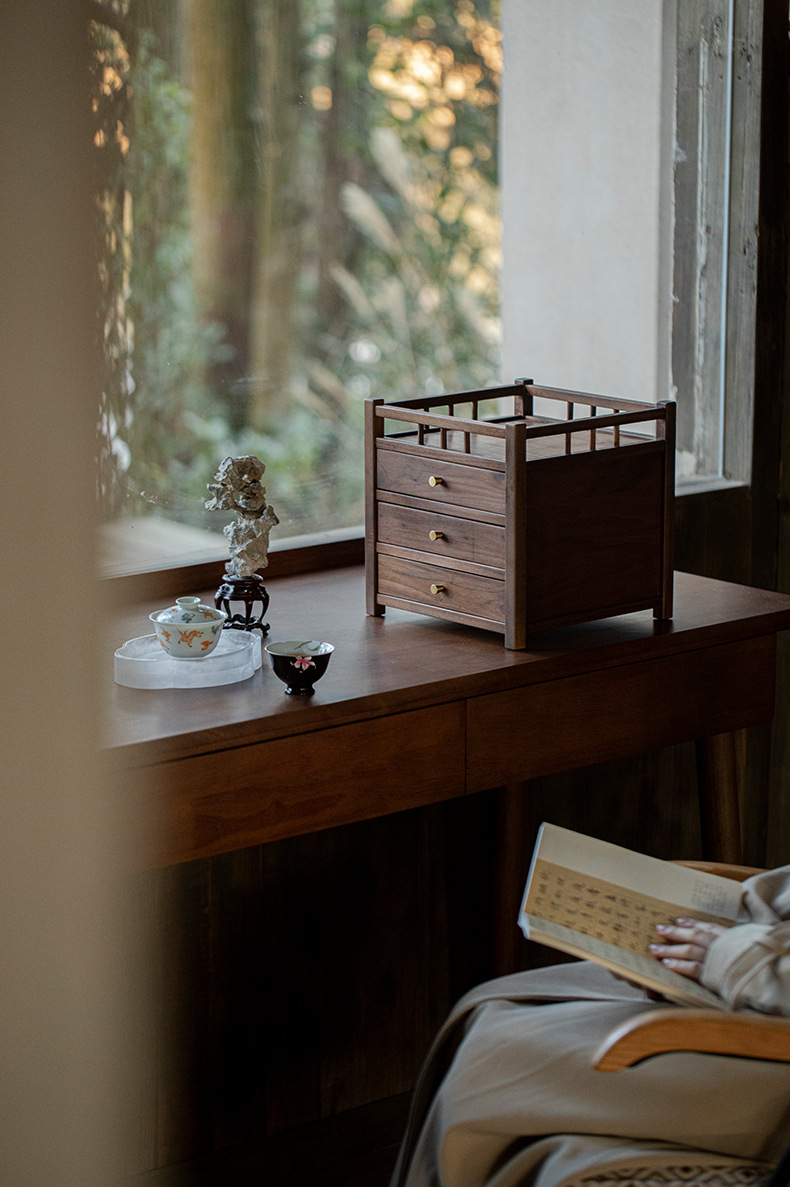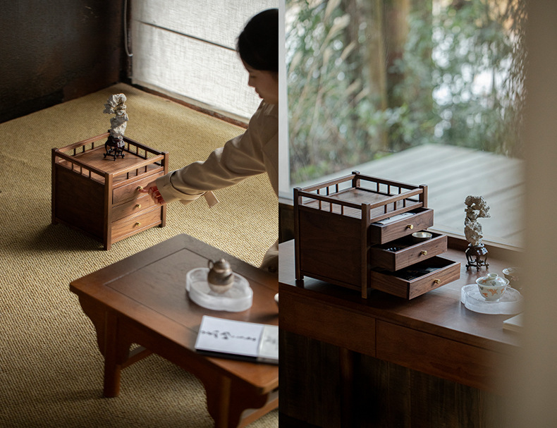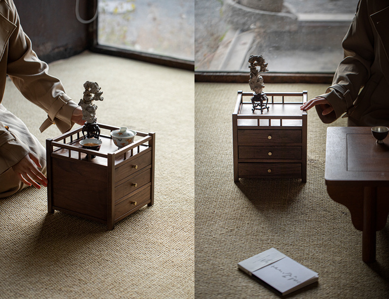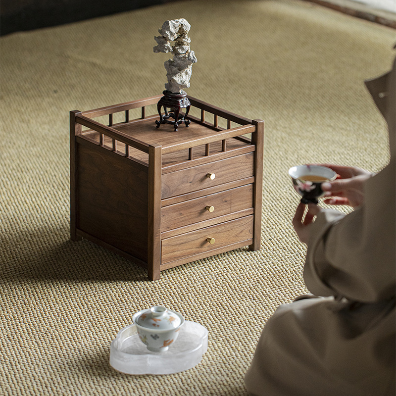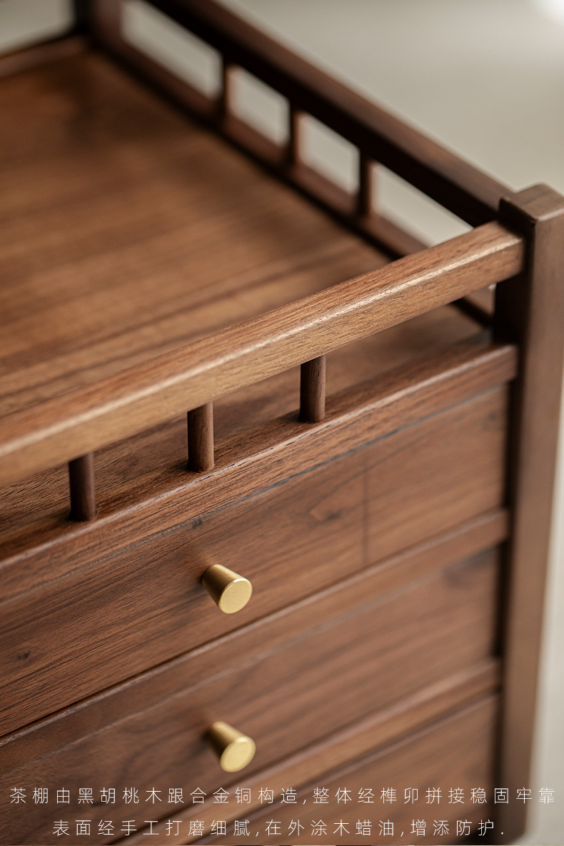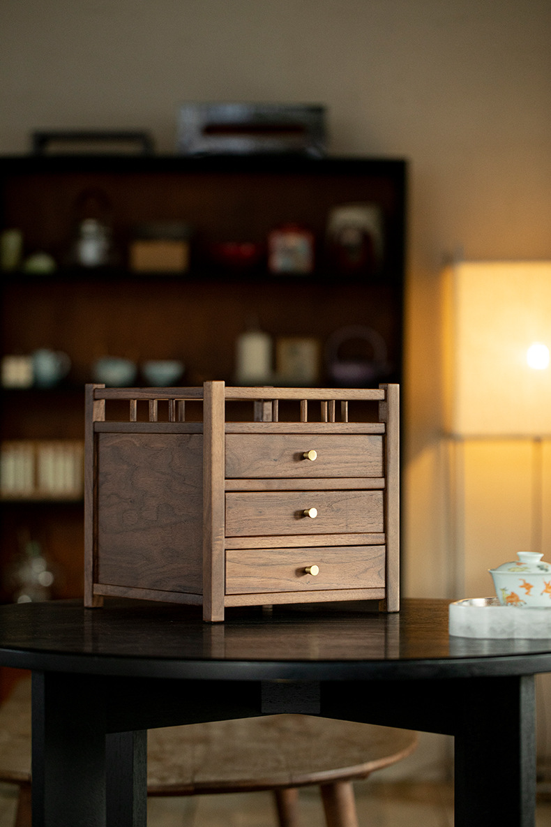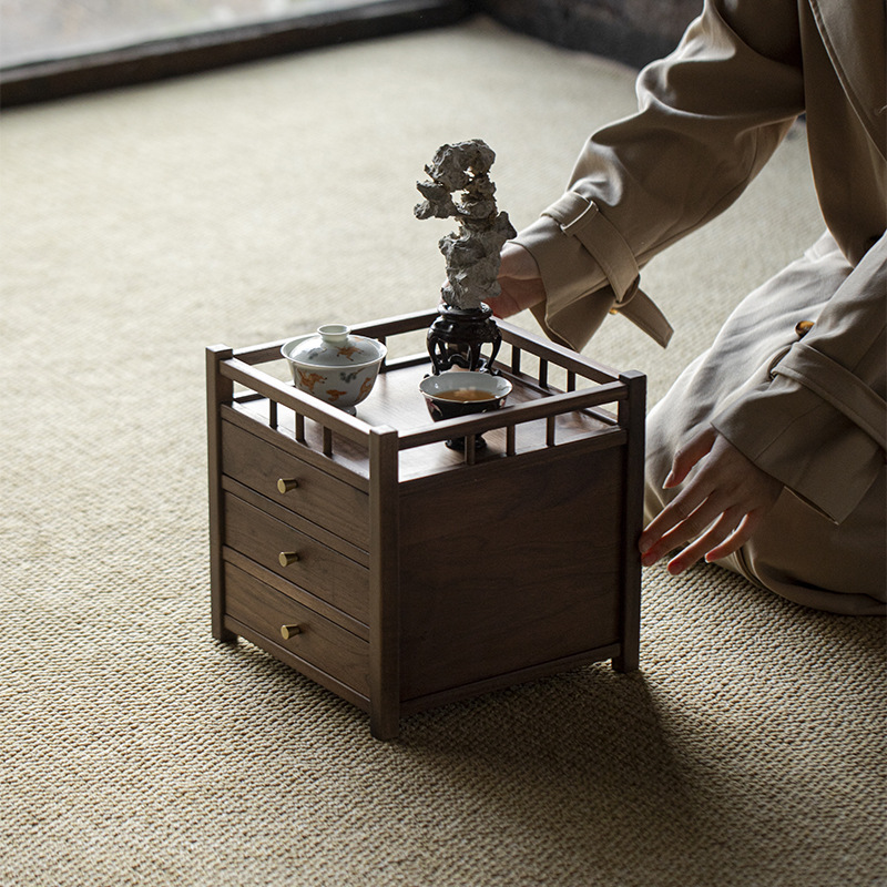 Шкаф для хранения чайного торта из черного ореха, трехслойный ящик для чая Пуэр, выдвижной ящик, стойка Bogu, чайный столик, чайный набор для хранения