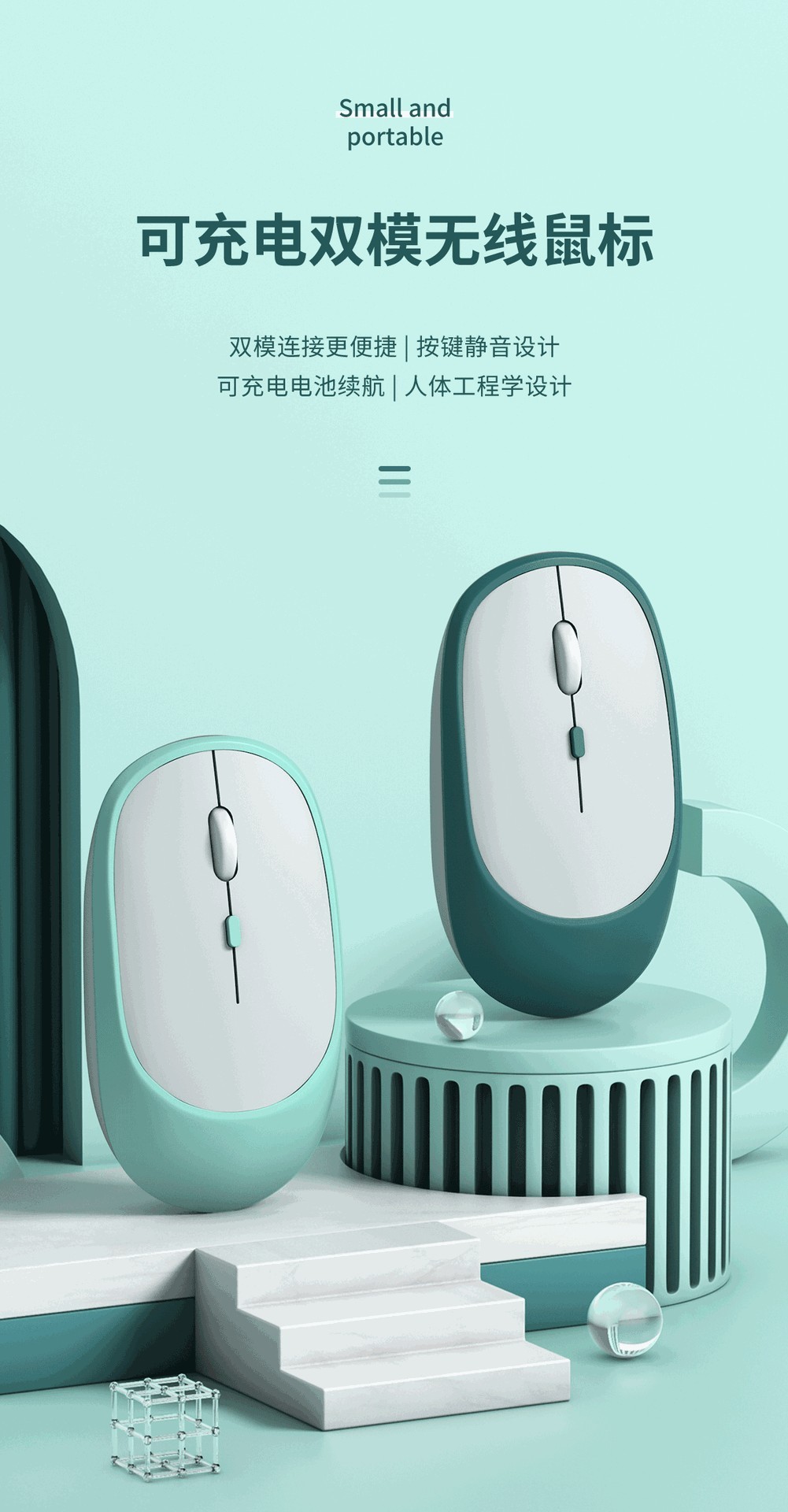 Портативная двухрежимная мышь с цветовым блокированием для трансграничной торговли, совместимая с iPad, мобильными телефонами, планшетами и ноутбуками.