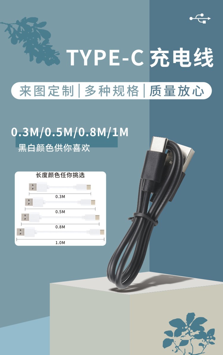 Кабель Type-C, кабель для передачи данных, короткий кабель, кабель для зарядки Bluetooth-гарнитуры, кабель для косметического прибора, кабель для увлажнителя, USB-кабель