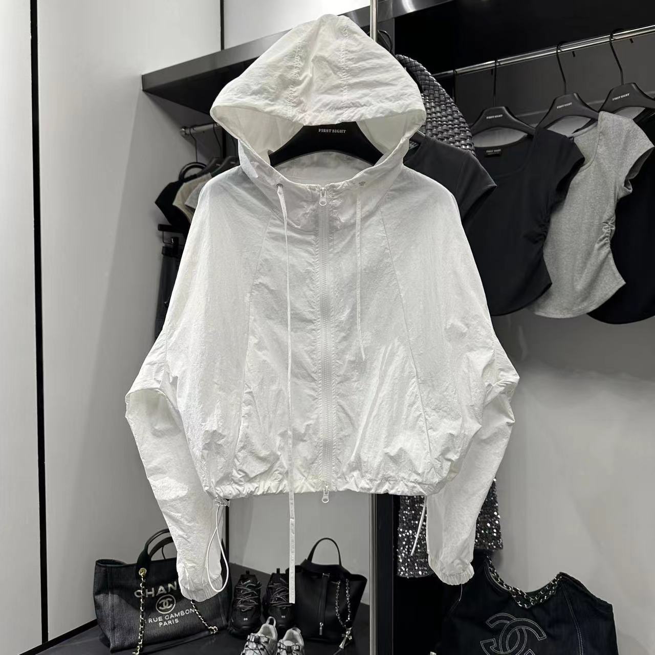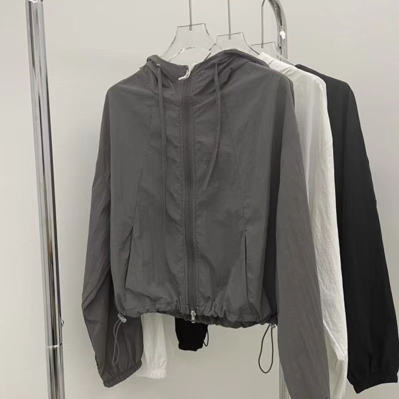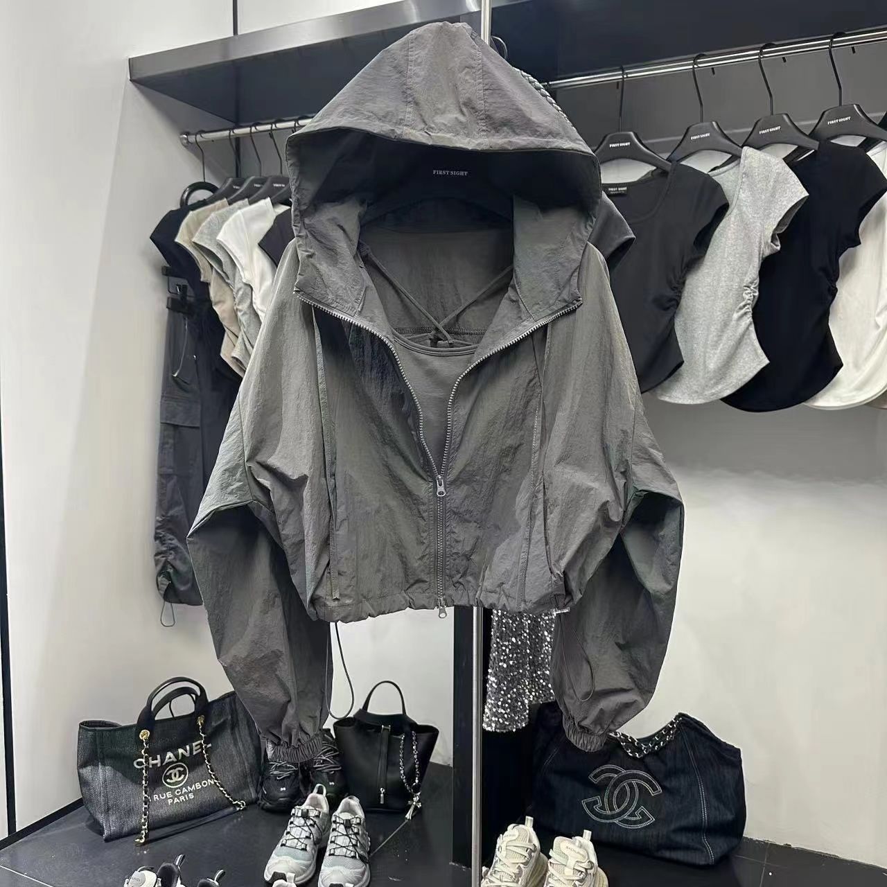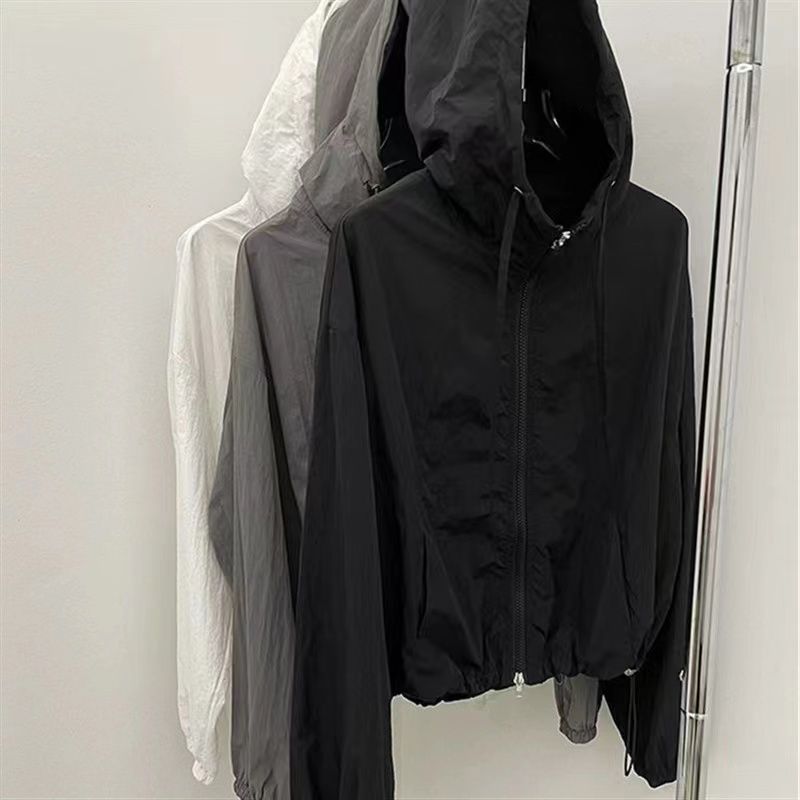 Тонкая женская куртка 2025 года, летняя короткая куртка свободного кроя, дышащая, с капюшоном на шнурке, солнцезащитная одежда, защита от УФ-излучения