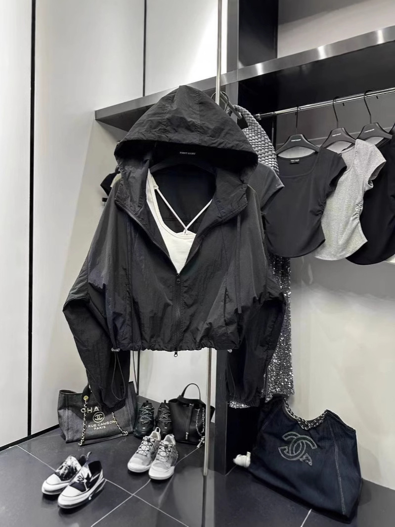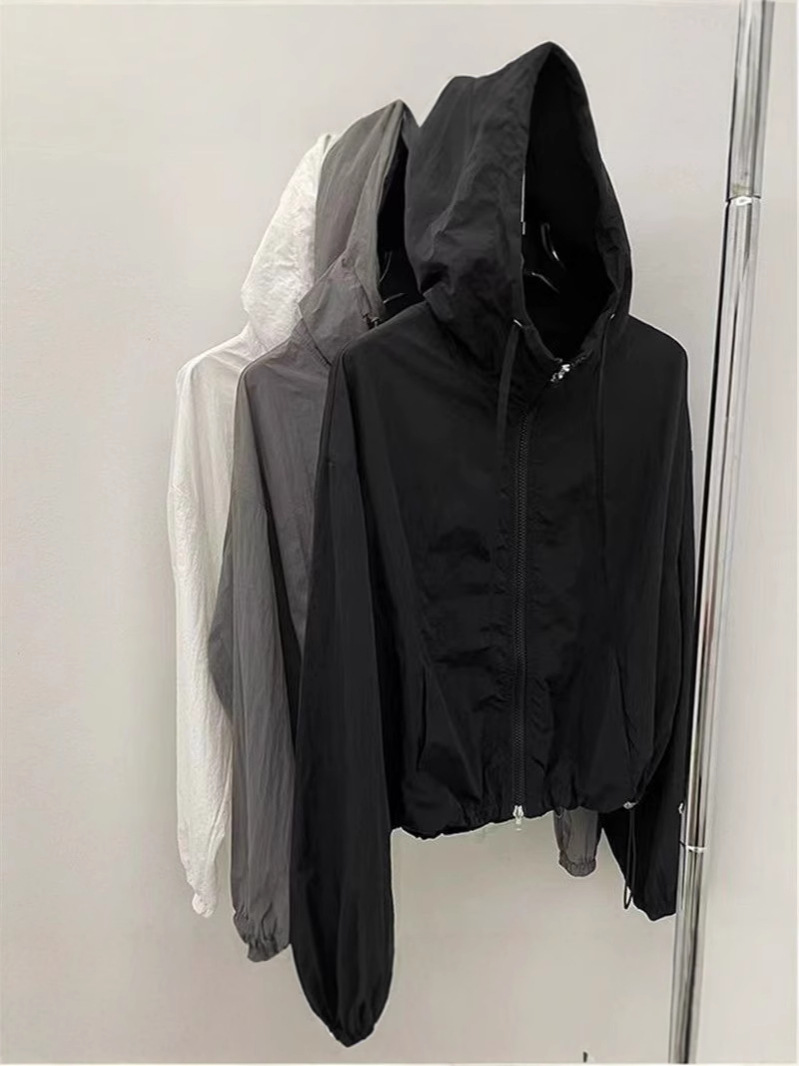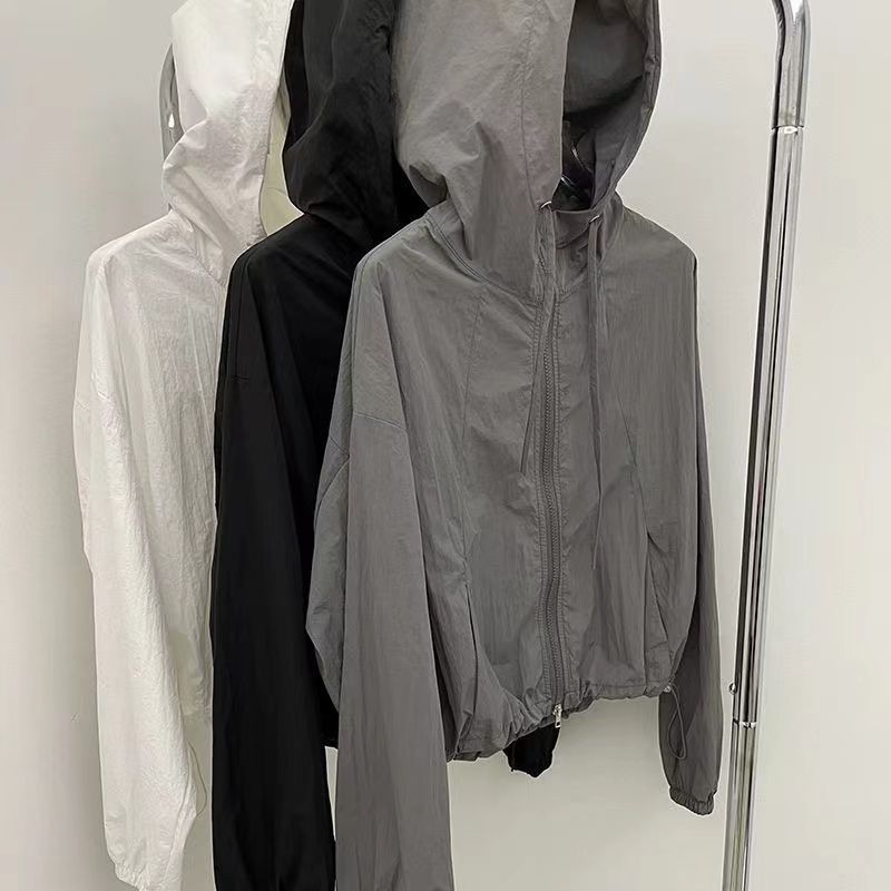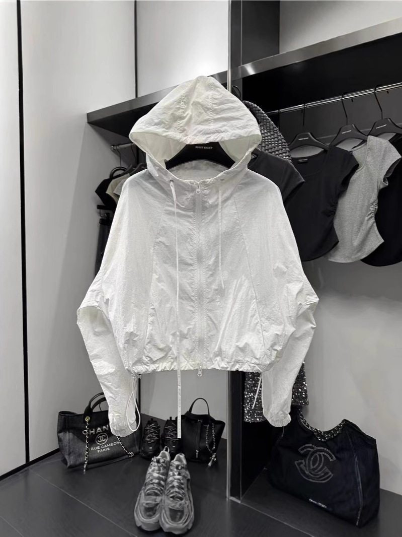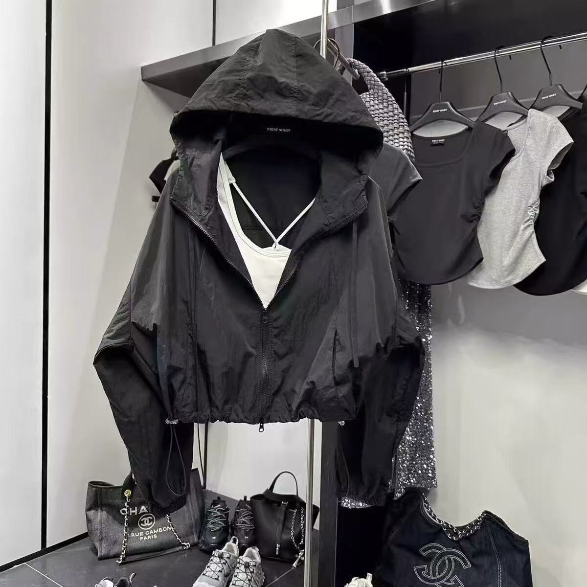 Тонкая женская куртка 2025 года, летняя короткая куртка свободного кроя, дышащая, с капюшоном на шнурке, солнцезащитная одежда, защита от УФ-излучения