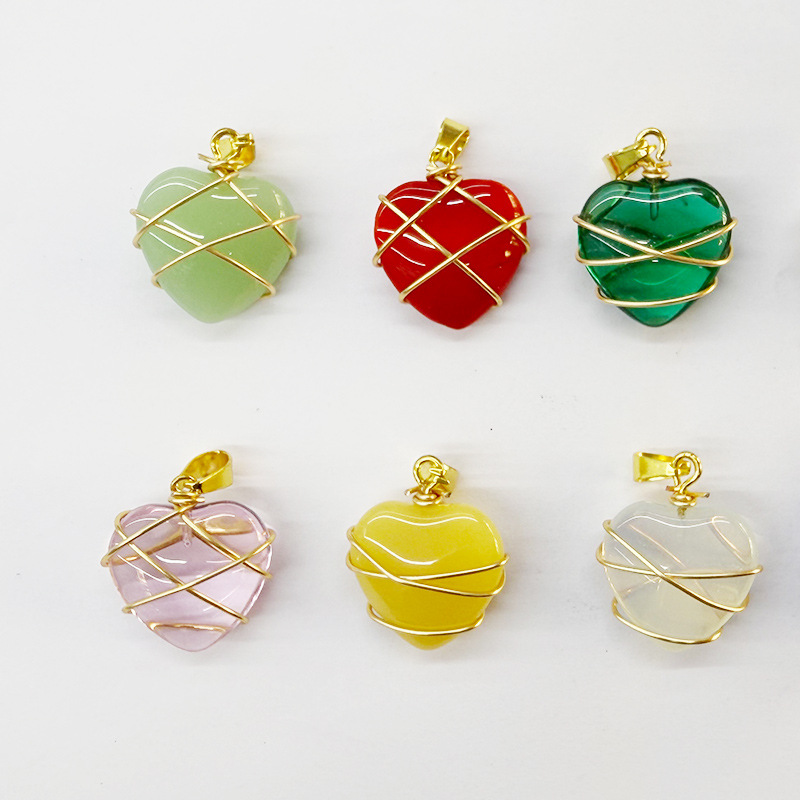 Кулон-сердце с подвеской в форме сердца, натуральный цвет, DIY, стеклянный кулон в форме сердца, оптовая продажа