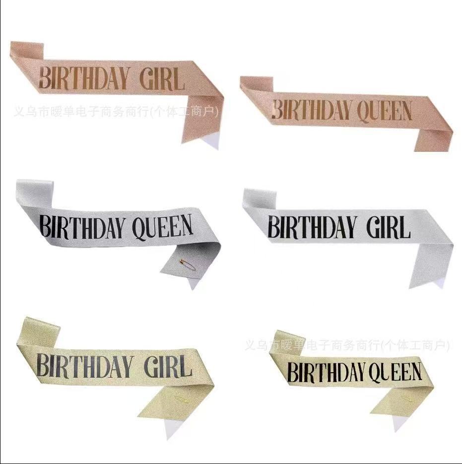 Блестящий ремень на плечо для вечеринки по случаю дня рождения, пояс для дня рождения, королева, с днем рождения, лента