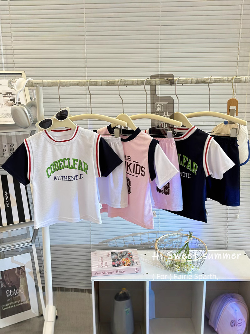 Летний комплект из двух предметов для мальчиков и девочек, повседневная спортивная одежда для активного отдыха, быстросохнущая летняя детская одежда, костюм с короткими рукавами для малышей
