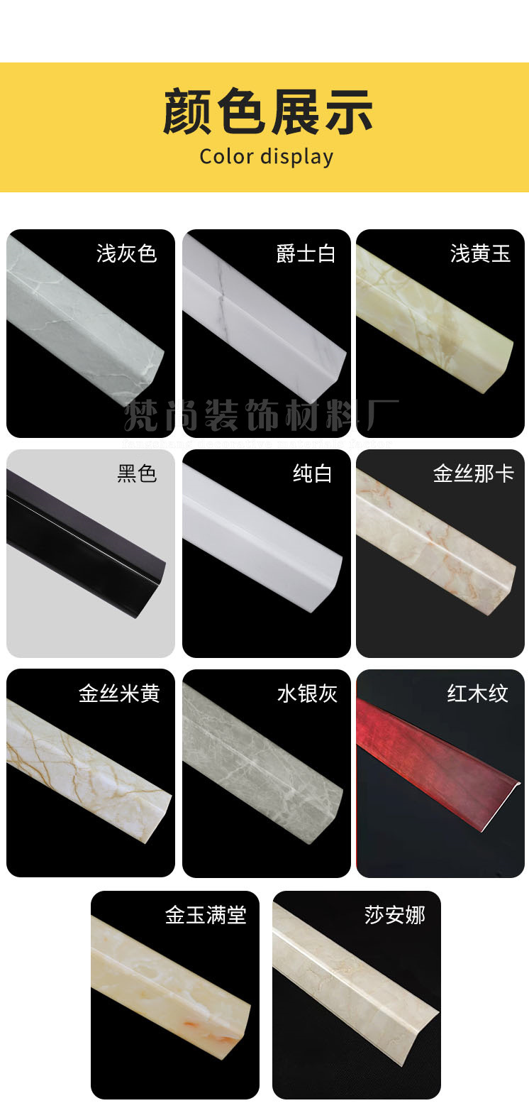 Фабрика оптовая продажа каменной пластики Ян Угловая плитка ПВХ защитная полоса Прямоугольная линия закрытия имитация мраморного пепел