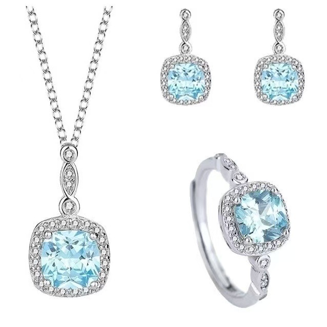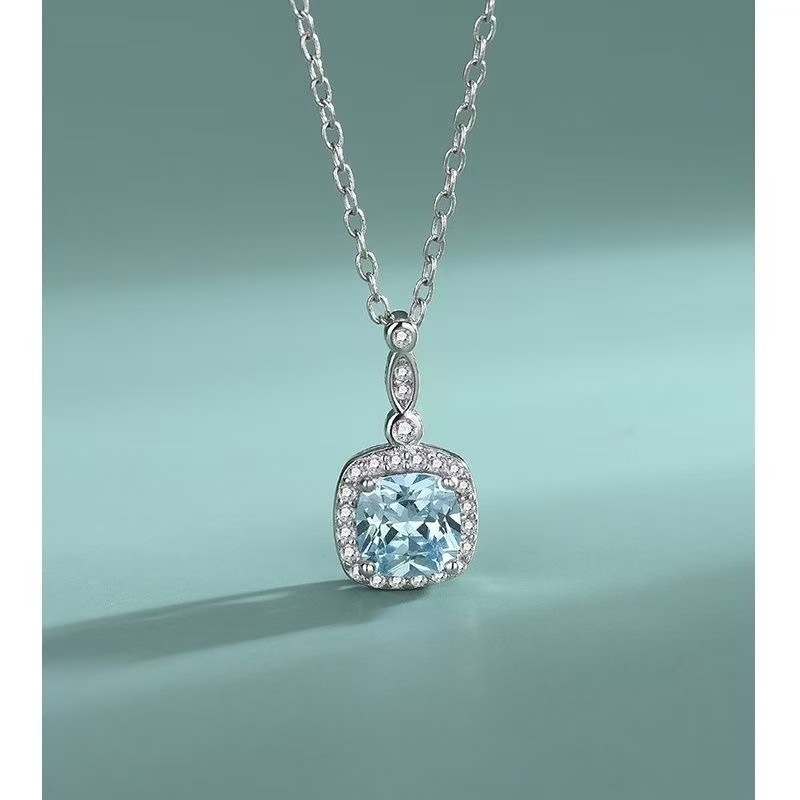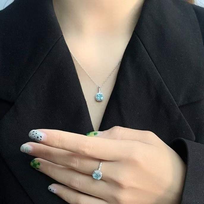 Комплект ювелирных украшений с геометрическими драгоценными камнями, высококачественная светло-голубая простая цепочка на ключицу, утягивающая, модная и универсальная меховая цепочка на ключицу