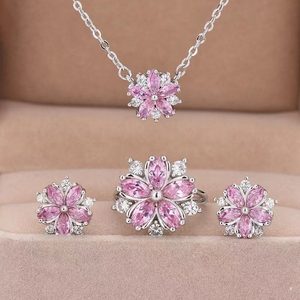Романтический набор вишневых цветов медное ожерелье циркон цветы розовые ожерелье набор серьги женские корейские лепестки медный микро-инкрустированный